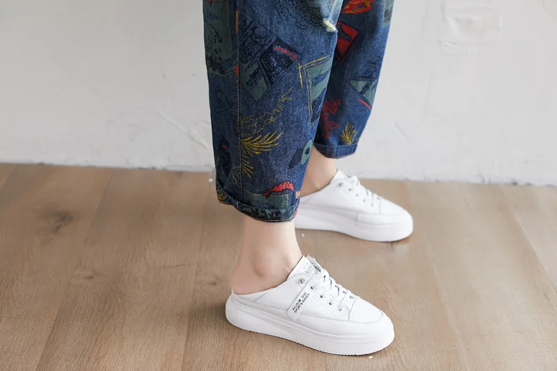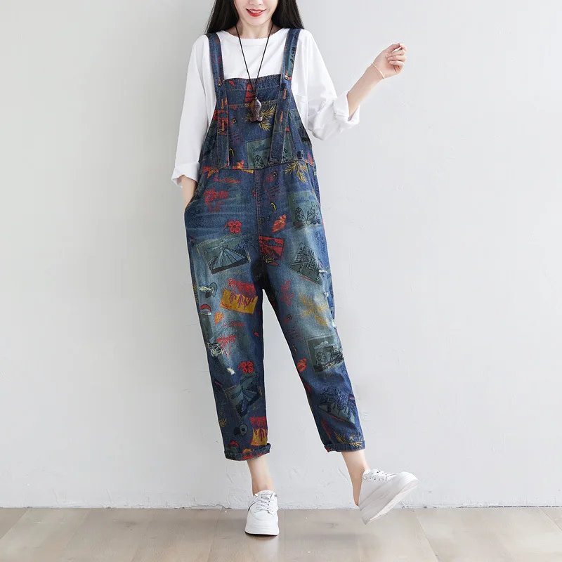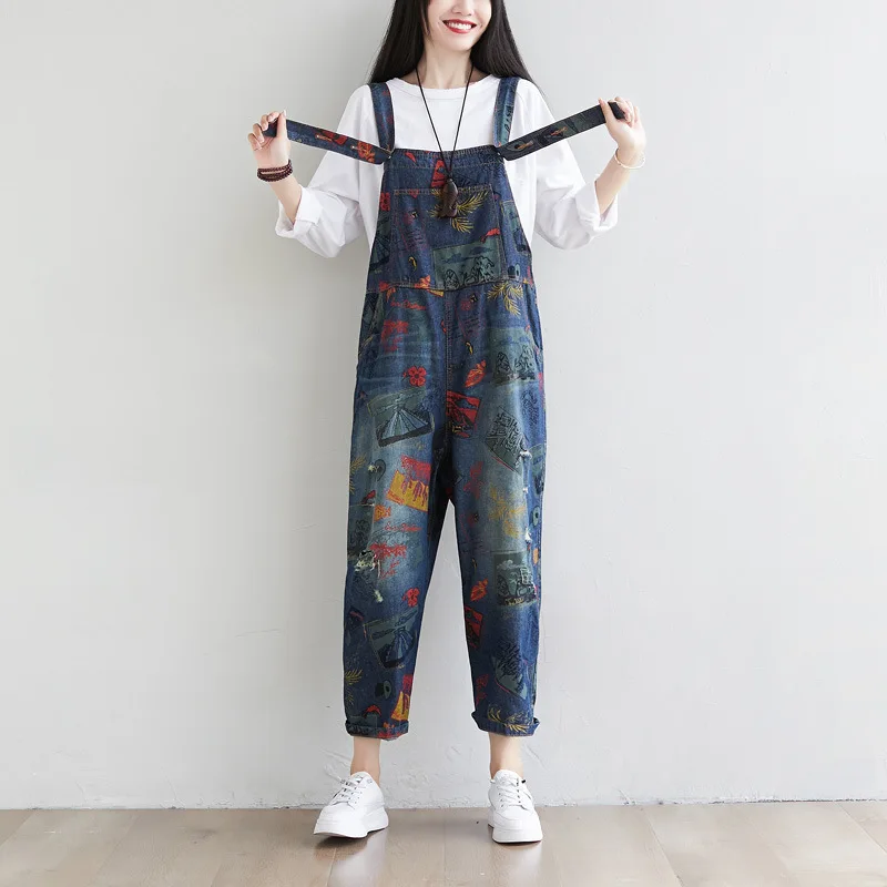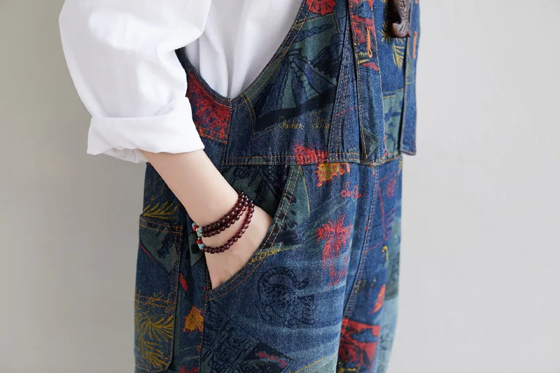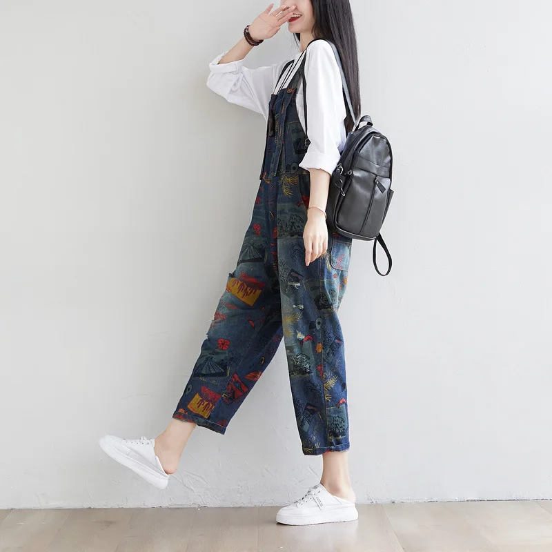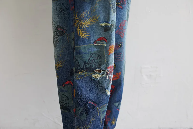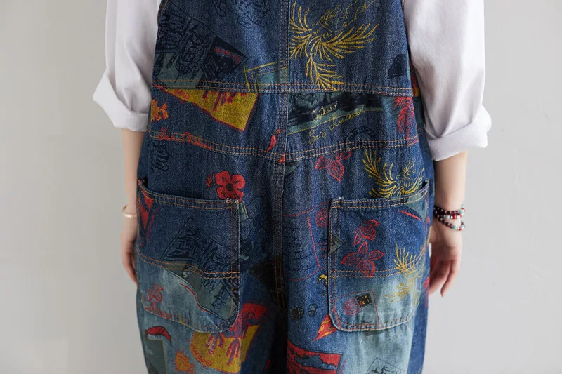 Женский джинсовый комбинезон, осень 2021, плюс размер, рваные джинсы, комбинезоны с карманами, с принтом, Свободные повседневные мешковатые штаны