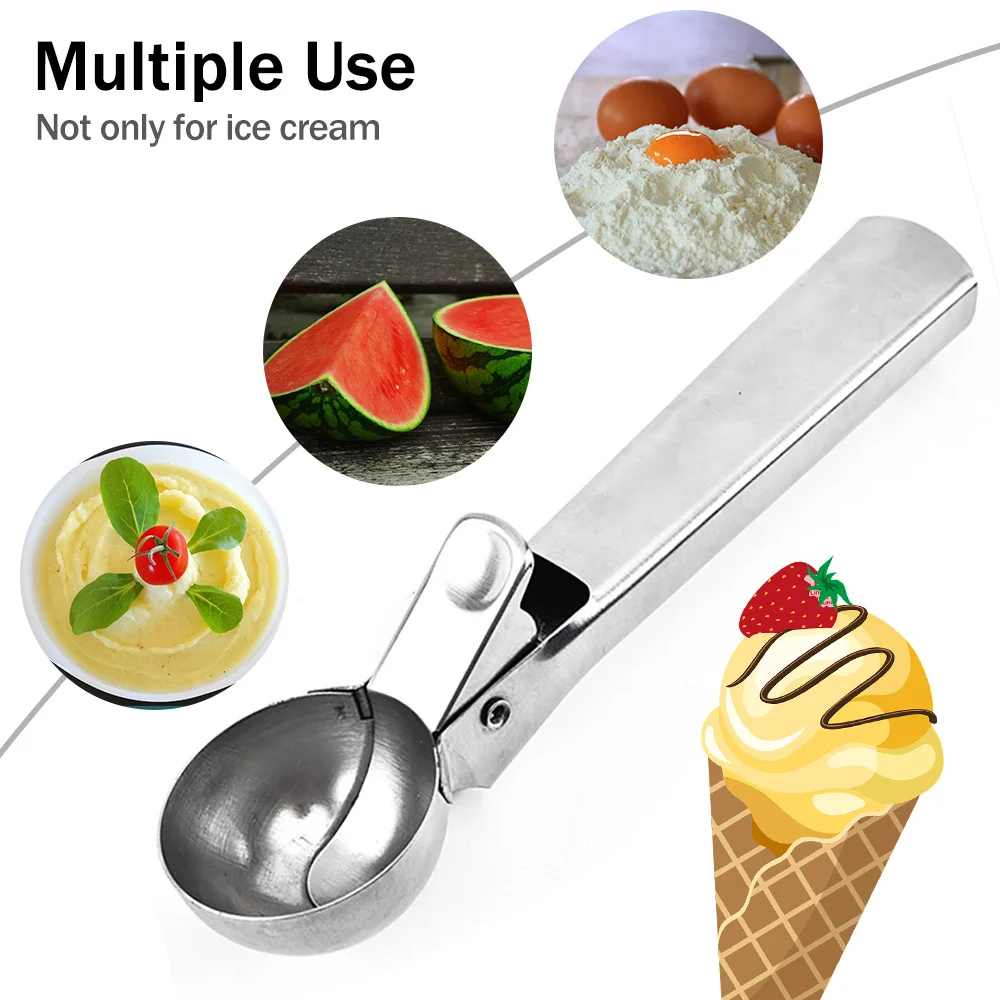 • Многоразовая-с изогнутой ложкой, наш Совок подходит для использования дома, вечеринок и салонов мороженого. Вы можете легко сделать мороженое, пюре. Фруктовые более здоровые блюда или гарниры.