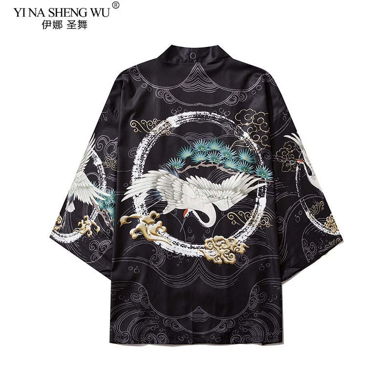 Японский костюм с принтом животных, кимоно, пальто, футболка для мужчин, Harajuku, женские топы, Япония, Haori, кардиган, рубашка, Yukata, пальто, куртка, пляжная