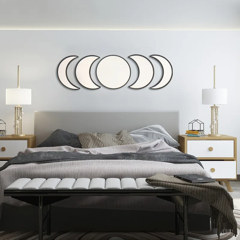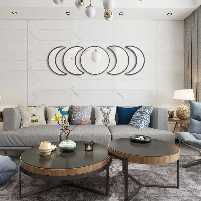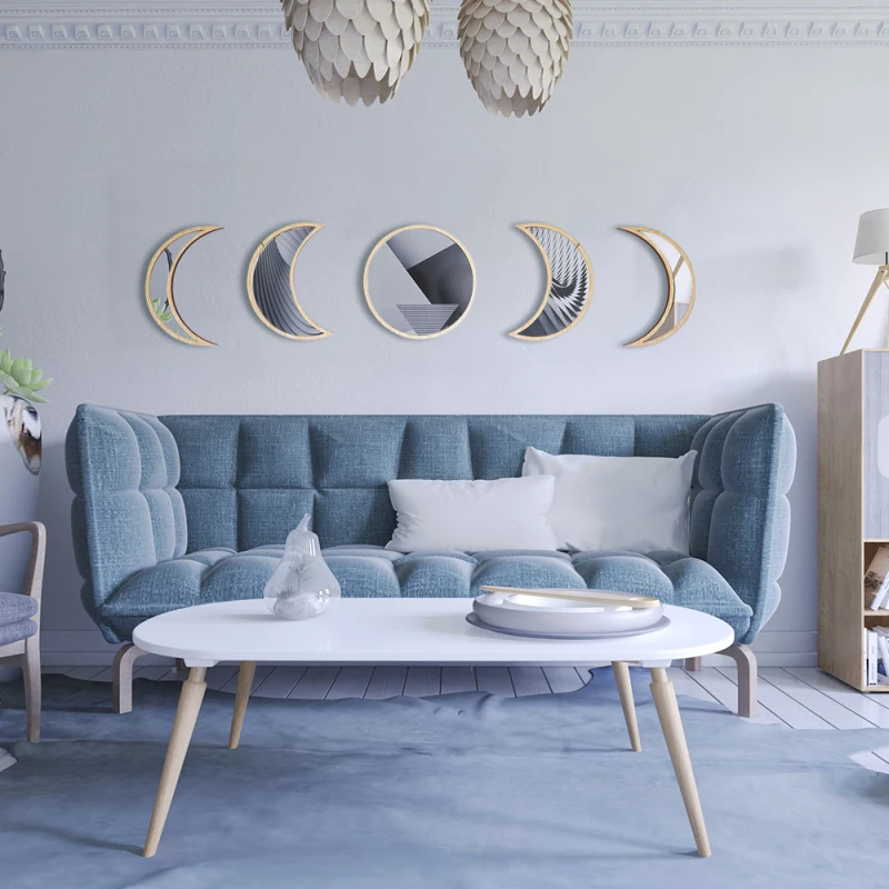 Скандинавский натуральный Декор акриловое Moonphase зеркала дизайн интерьера деревянный лунный фазовый зеркальный богемный настенное украшение для комнаты