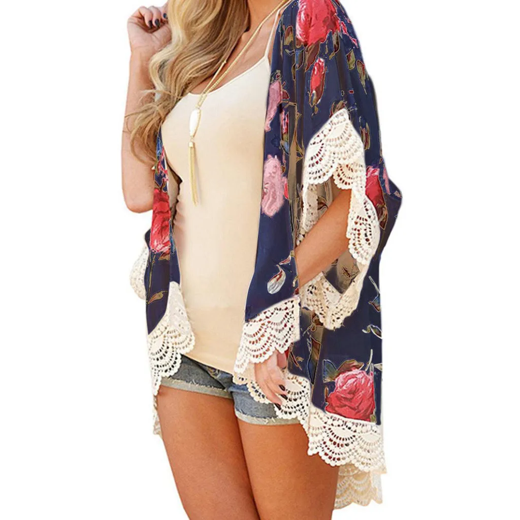 Женские модные летние топы кимоно кружевной кардиган размера плюс блузка с шалью