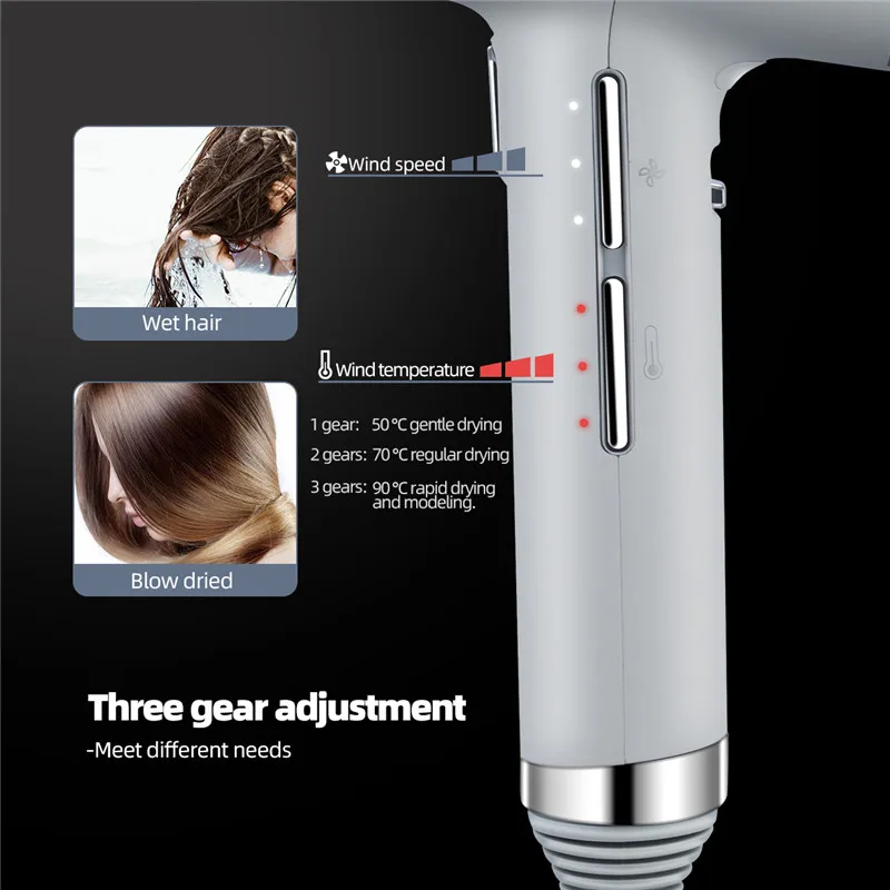 1. Светодиодный индикатор, скорость ветра, температура шестерни дисплей, который обеспечивает широкий угол обзора. 2. Скорость ветра и температура модель доступна в трех-регулировка скорости для удовлетворения различных потребностей. 3. Фен имеет функцию памяти. При повороте переключателя, он будет автоматически, чтобы выбрать режим используется в тех случаях, когда он был выключен в прошлый раз. Значительного повышения эффективности и сэкономит ваше время. 4. Лопасть вентилятора может поворачиваться для очистки фильтра экрана, чтобы добиться плавного воздушного потока. 5. В том случае, если переключатель установлен в положение "I", для измерения скорости ветра и температуры можно регулировать. Поверните переключатель в верхней части замка mark для того чтобы зафиксировать скорректирована режим. 6. В тех случаях, когда дует волосы, нажмите один ключ кнопка холодного воздуха для того, чтобы сделать стиль большей натуральности и невероятной долговечностью. 7. Увлажняющий отрицательных ионов Уход за волосами, отпустите, активный кислород и миллионов отрицательных ионов, сохранить волосы блестящие и мягкие. 8. Мощный обдув порт, быстро сухих волос. 9. Простой и изящный круглый вырез сделают вас более эргономичный корпус, комфортные ощущения от рук и простота в эксплуатации. 10. Устройство защиты от перегрева, в тех случаях, когда тела перегрета, он будет автоматически отключает питание; Есть защита от утечки прибор, вы можете использовать его с уверенностью.