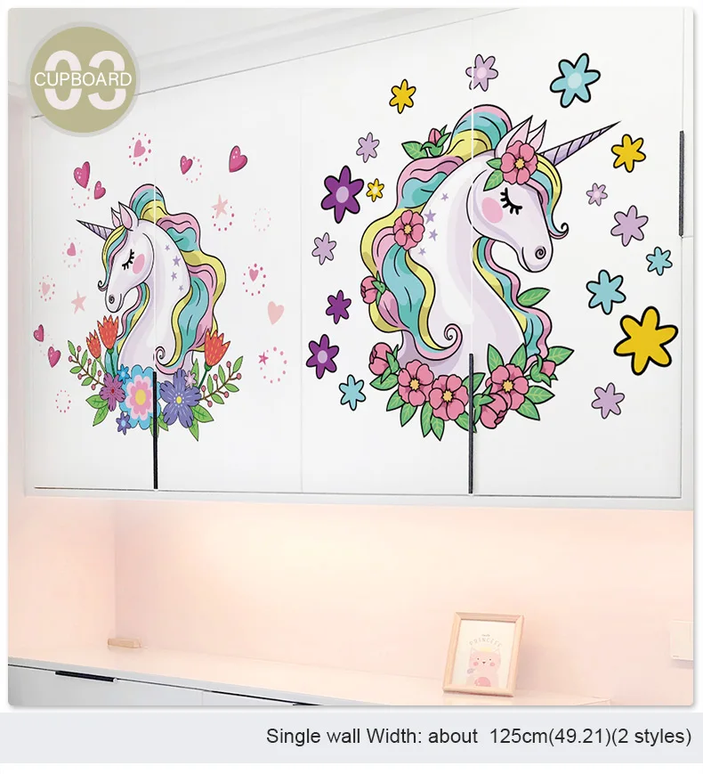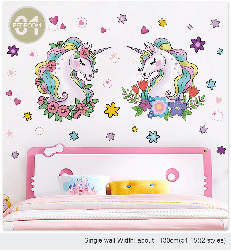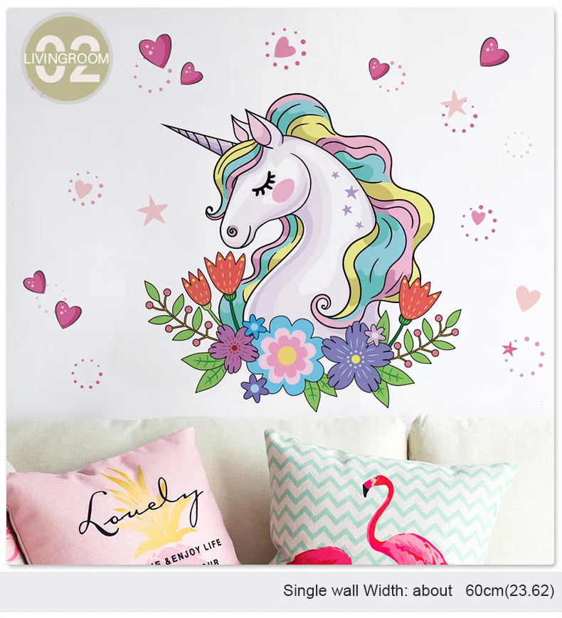 DICOR бренд Единорог Наклейки на стены, единорог стикер на стену декор с сердцем цветок на день рождения Рождественские подарки для мальчиков девочек детская спальня декор Детская комната Домашний Декор (a-единорог)
