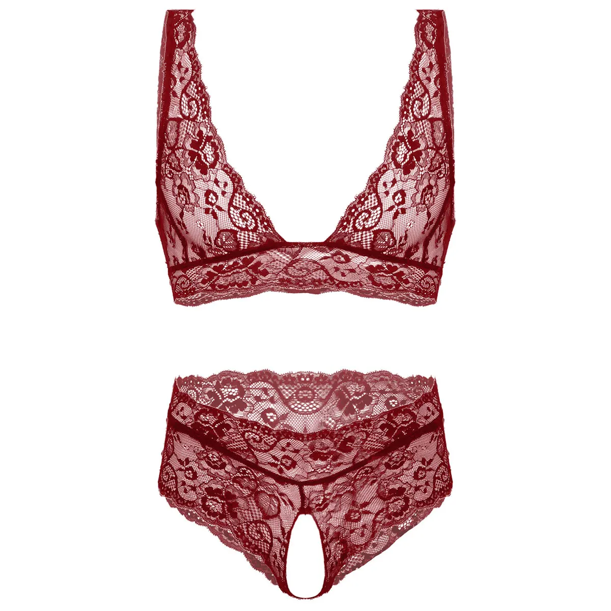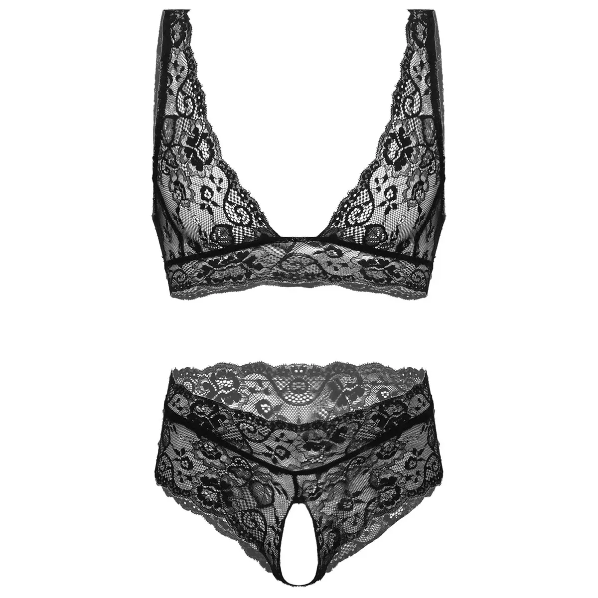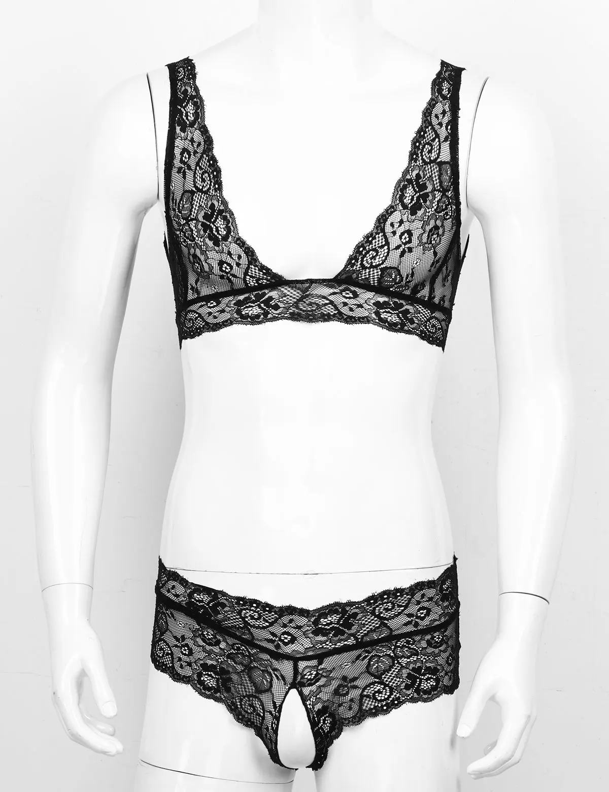 2 шт., мужское Прозрачное нижнее белье с кружевами с цветочным узором, бюстгальтер с нижней частью.