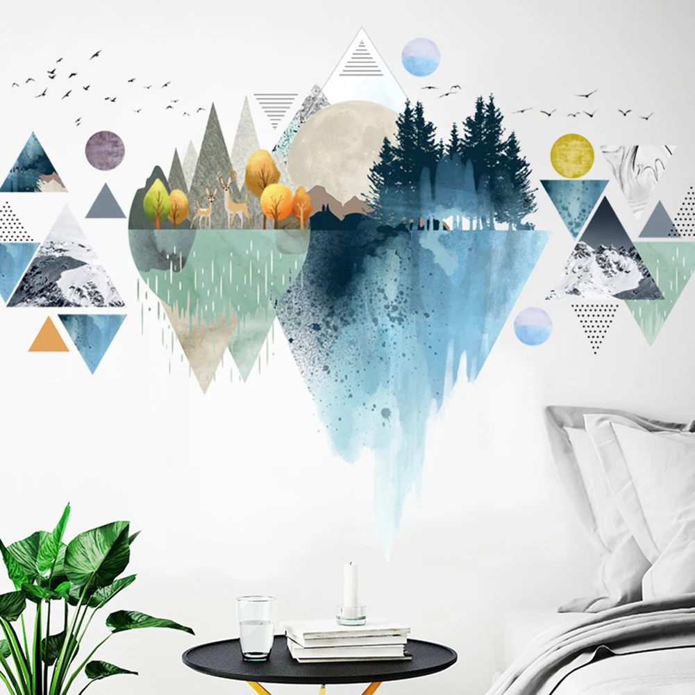 Геометрический треугольник горное дерево Настенная Наклейка фон для спальни наклейка
