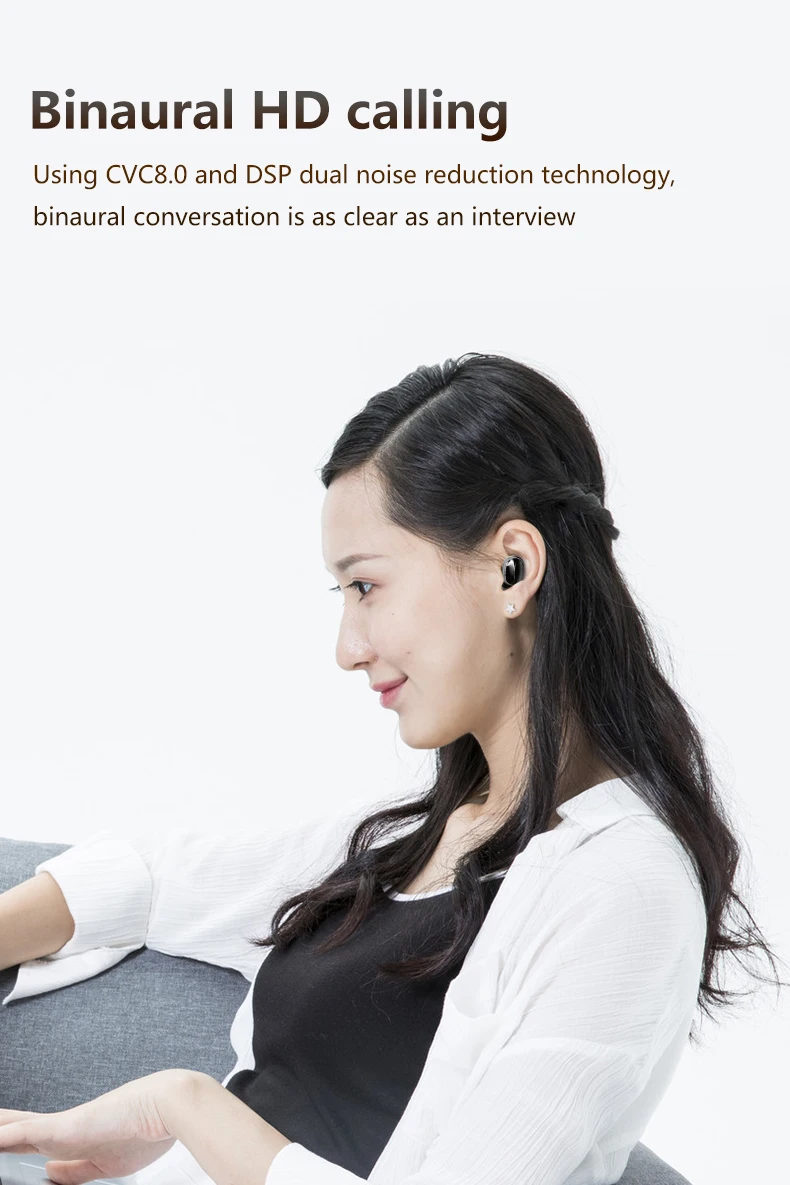 Последняя TWS бинауральная стерео Bluetooth гарнитура с чипом 5,0 дает вам очень эффективную беспроводную производительность.
