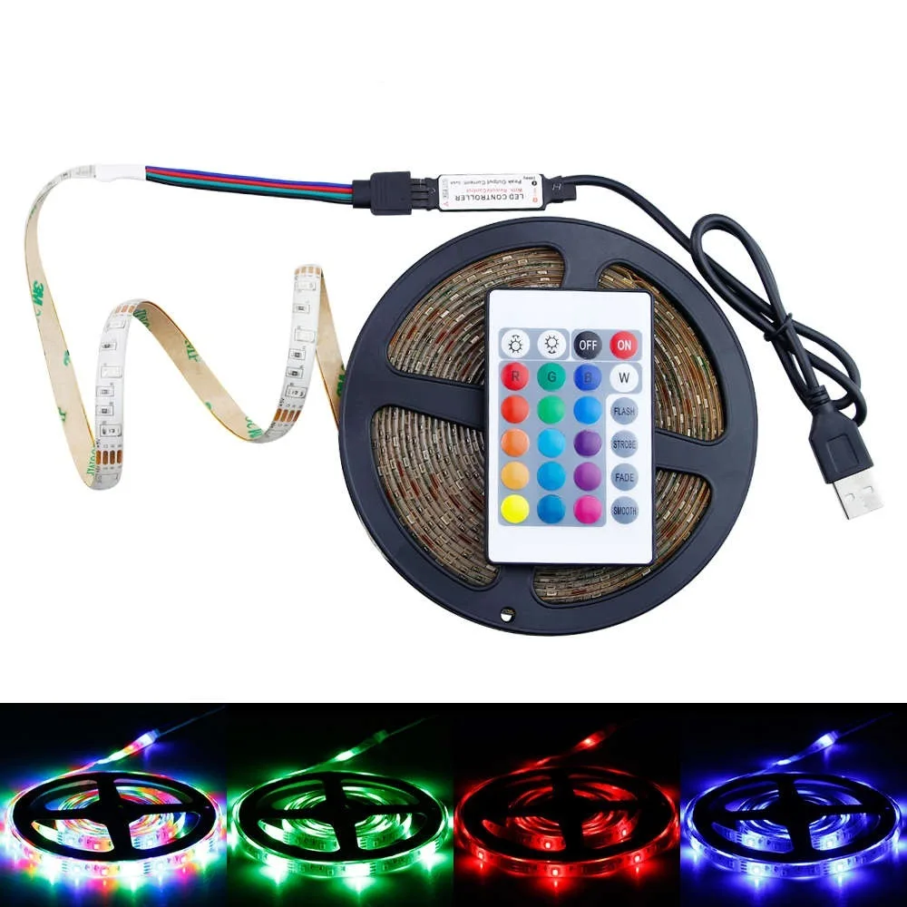 Led RGB полосы светильник 16 Цвет USB светодиодный светильник с 24key ИК-пульт дистанционного управления лампа лента 0,5/1/2/3/4/5 м Non-Водонепроницаемый