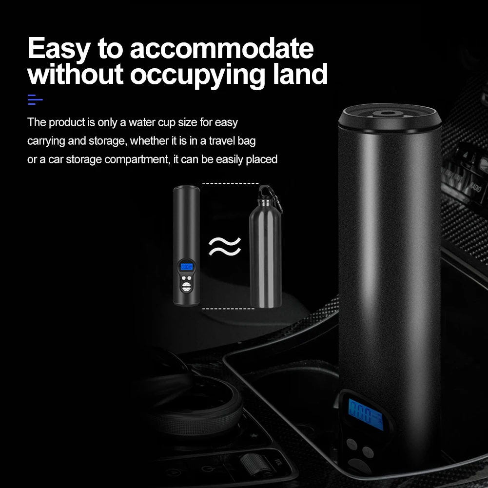 * 1. Беспроводной и портативный: беспроводной дизайн и компактный мини-размер делают воздушный компрессор портативным и простым в эксплуатации одной рукой. Компрессор готов всего за 4 шага. ЖК-дисплей показывает давление воздуха. Подходит для надувания, когда автомобильные шины недостаточны и полностью надуты шины для велосипеда и мотоцикла.