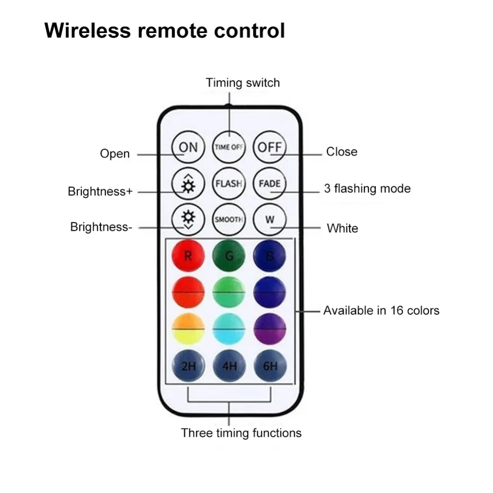 Много цветов: супер яркий 13 led Встроенный, 3 динамических режима изменения цвета, 16 различных цветов s в статических режимах.