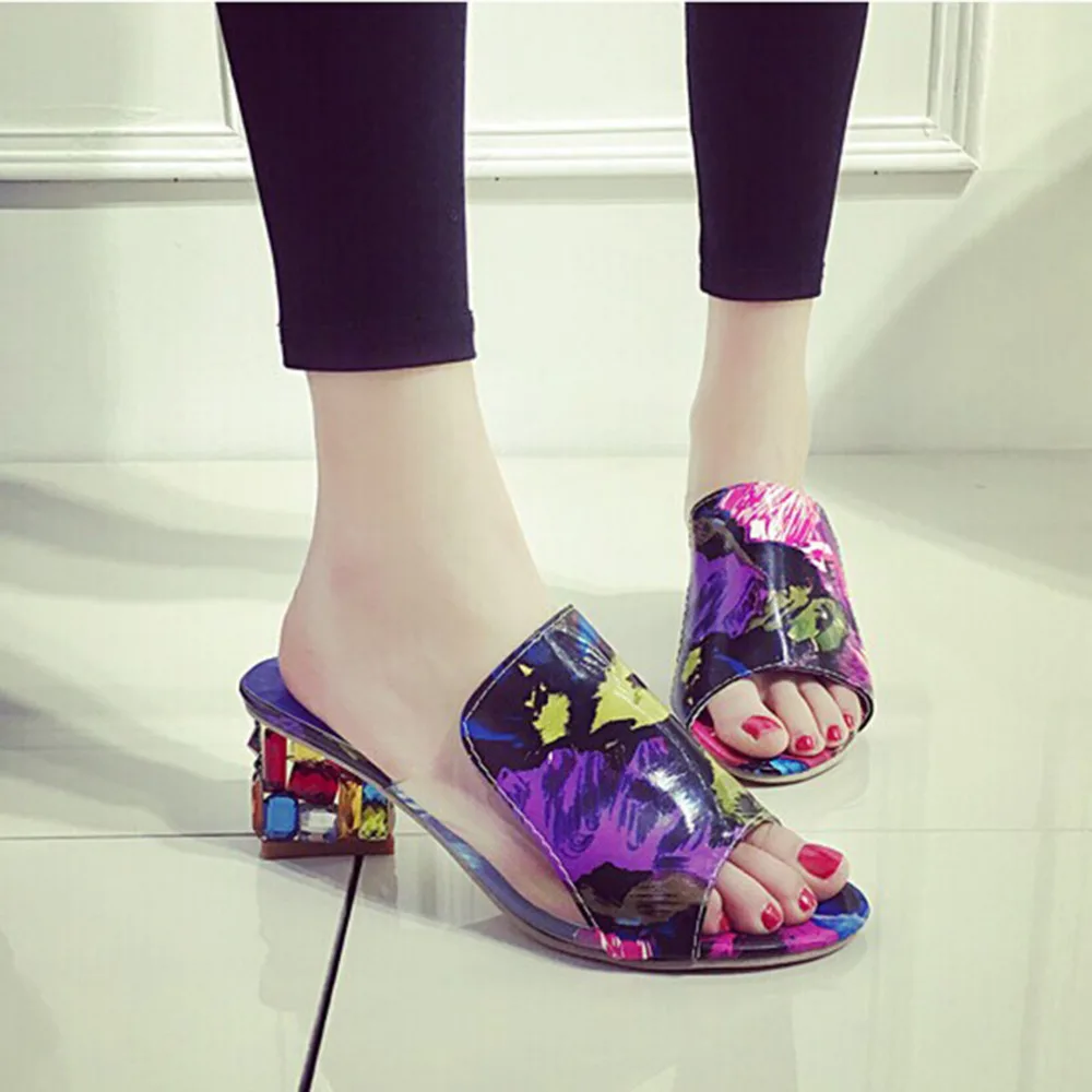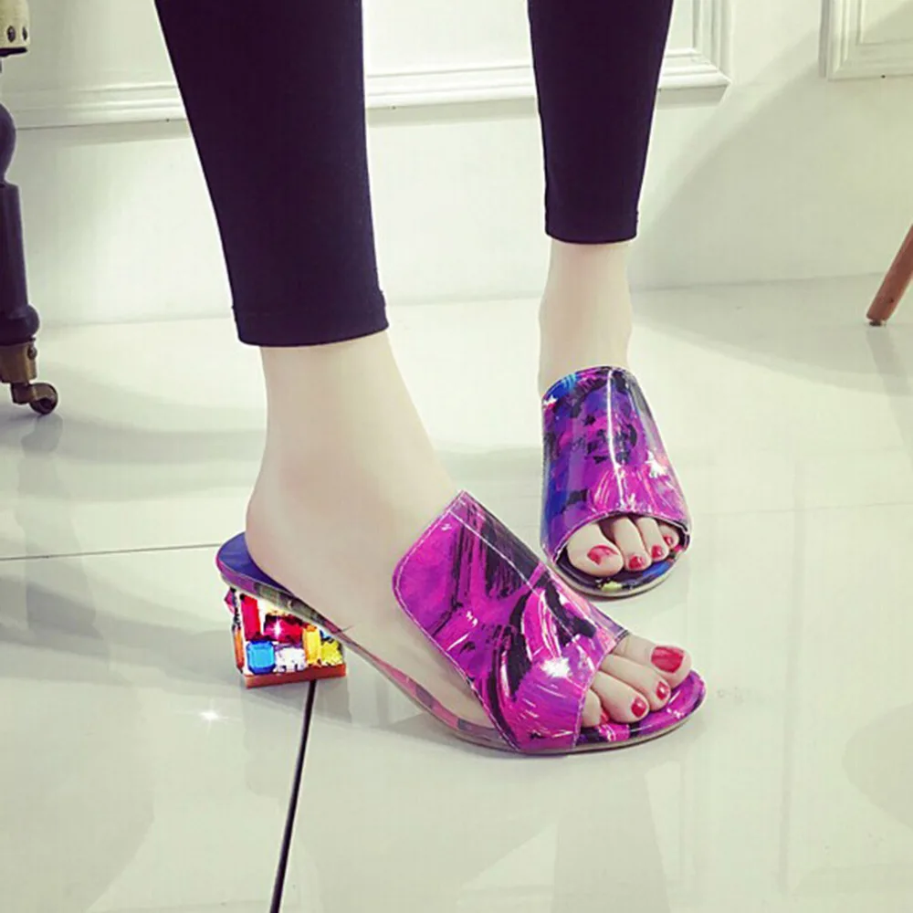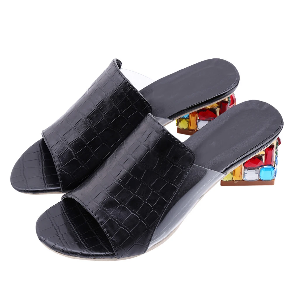 Sandalias Plataforma/летние женские босоножки из искусственной кожи; Женская обувь со стразами; Босоножки на толстом каблуке с кристаллами