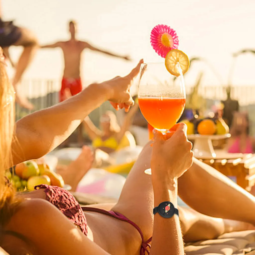 Заполните вашу жидкость на выбор и нажмите на логотип браслета, чтобы отказаться от отдыха.
