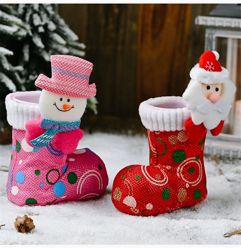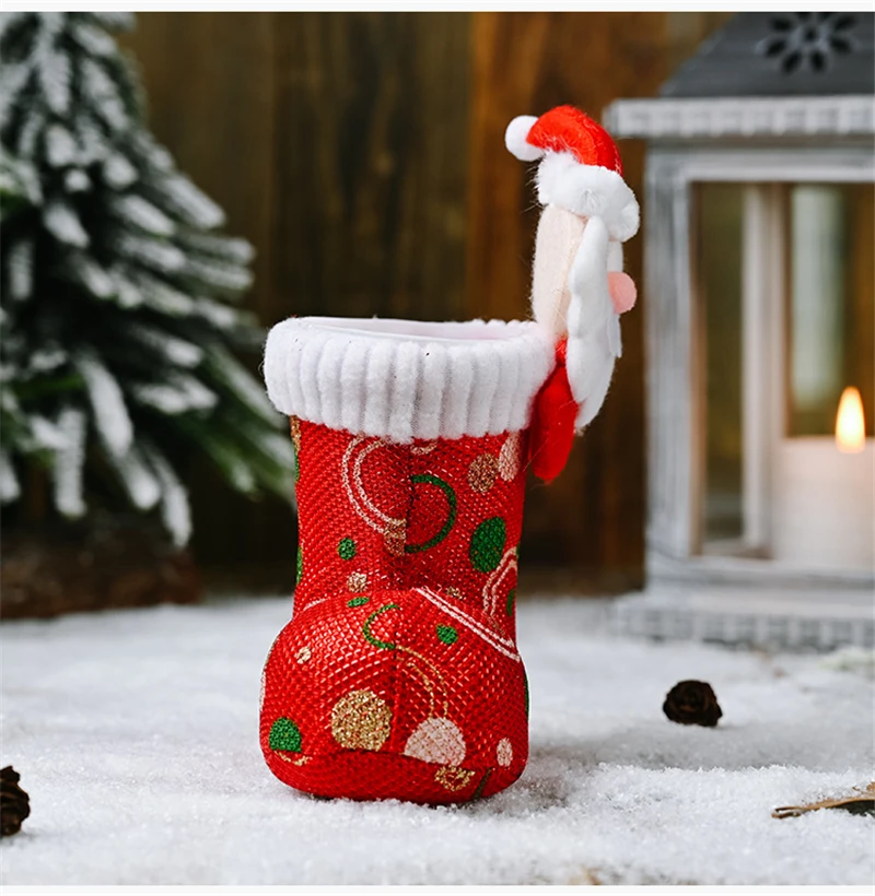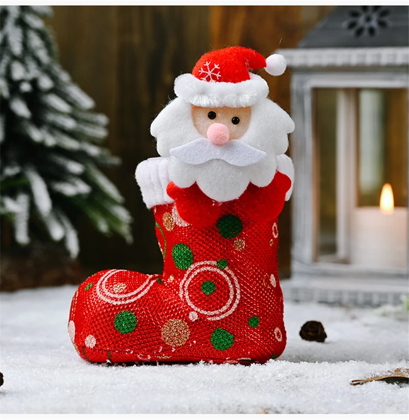 Christmas Funny Candy Boot Cute Ornaments Cartoon Bright Cloth Shoes Stockings Christmas Decoration Supplies Xmas Gift Holders