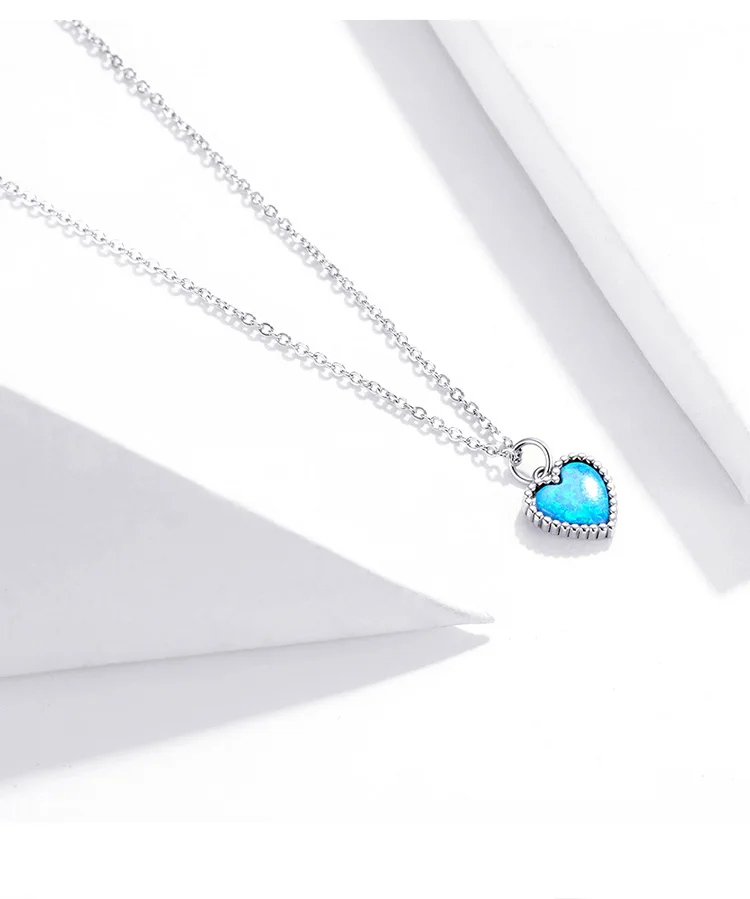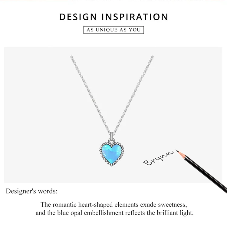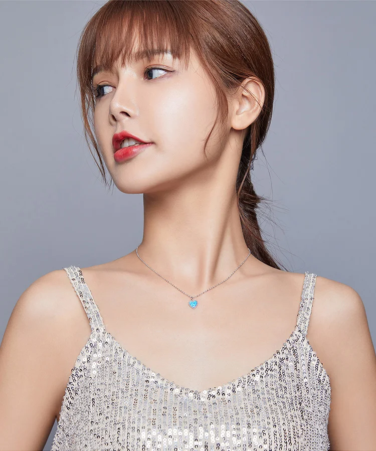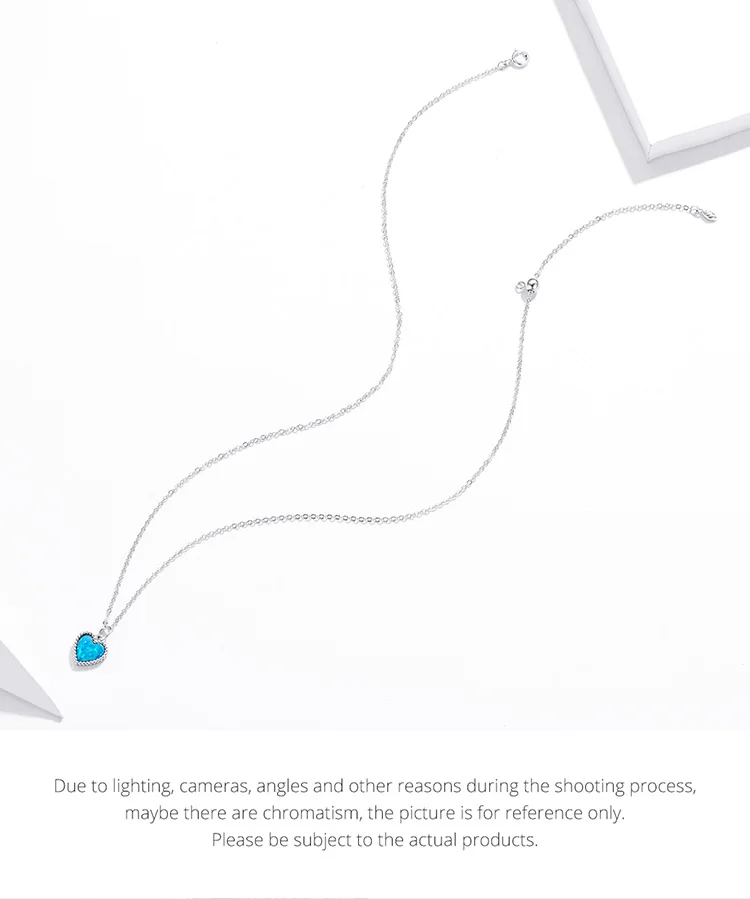 Material: S925+Plated platinum+Translucent opal Adjustable chain:45cm Description: The romantic heart-shaped elements exude sweetness, and the blue opal embellishment reflects the brilliant light.