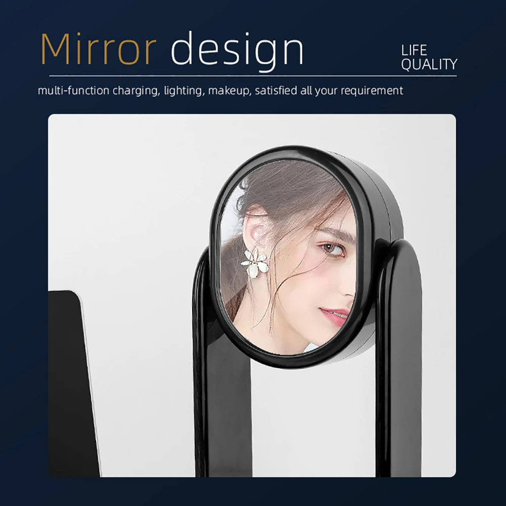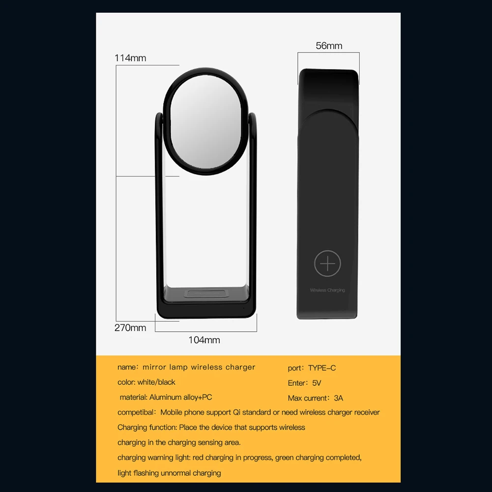 -3-в-1 многофункциональное Беспроводное зарядное устройство интегрирует настольная лампа для туалетного столика и зеркала для функций. Простое сочетание цветов и форма дизайна также делают его настольным украшением для спальни.