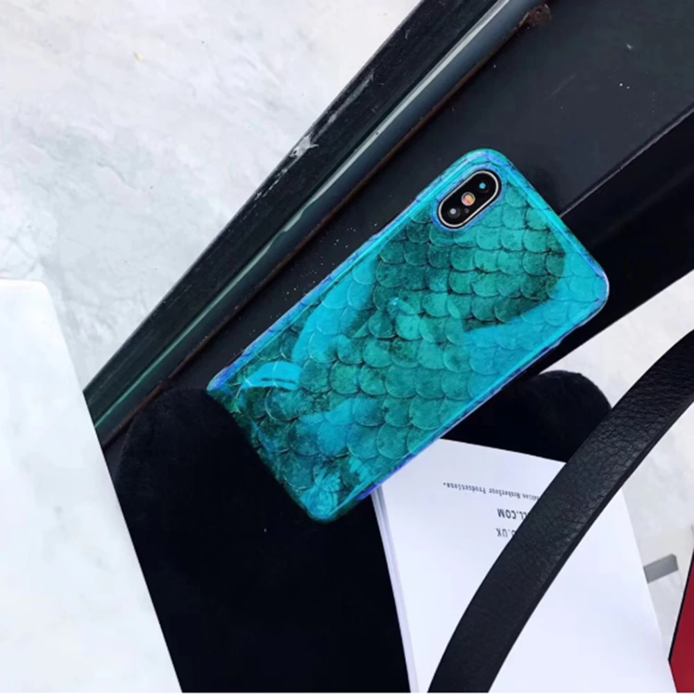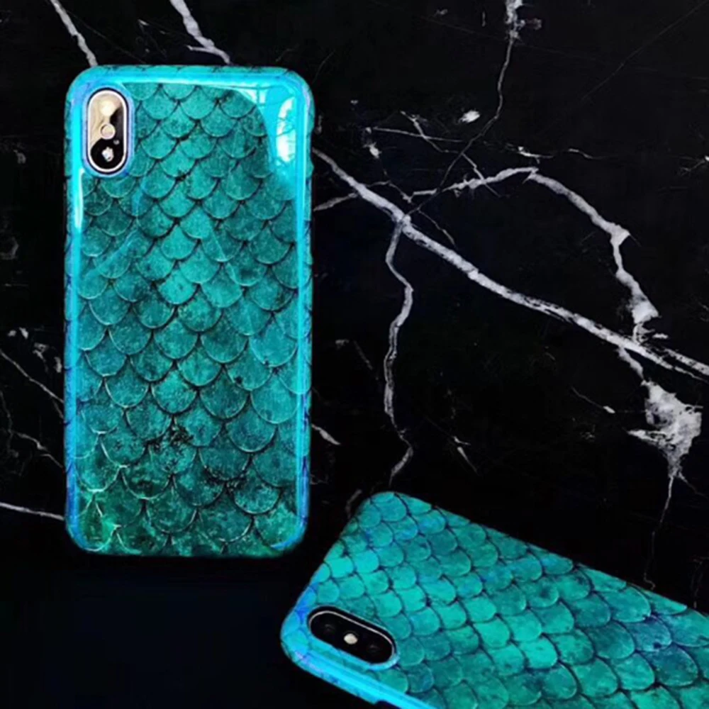 Для iPhone 11 Pro Max XR XS Max X 8 7 6 6S Plus Лазерная синяя рыбья чешуя мягкая IMD задняя крышка для телефона