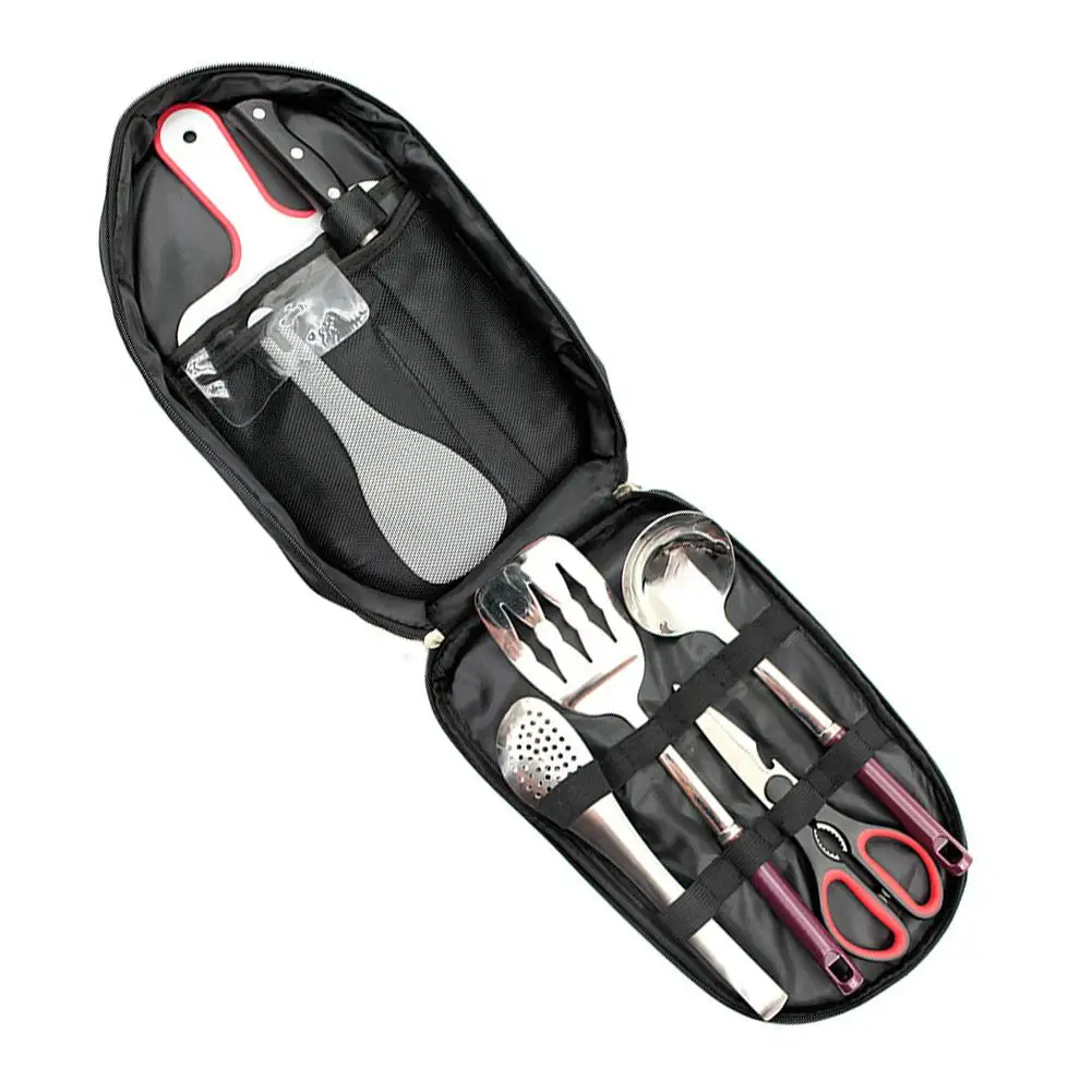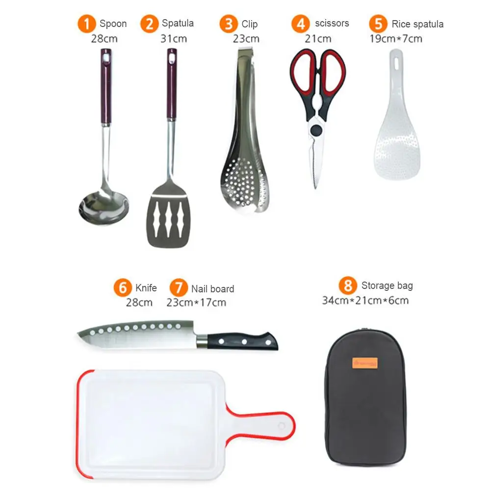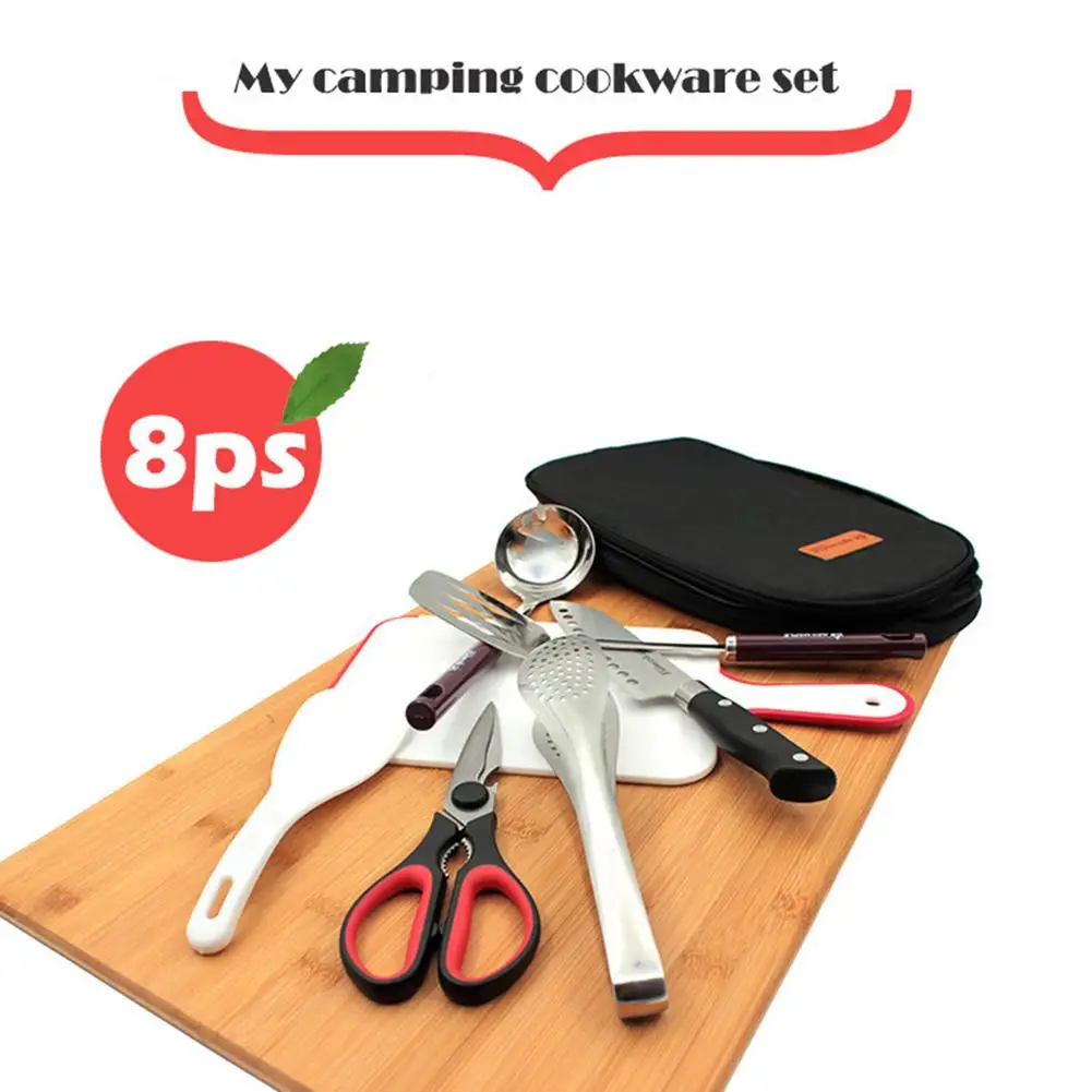 8 шт. портативный набор кухонных принадлежностей для кемпинга из нержавеющей стали Портативный набор инструментов для лопаток с сумкой для хранения кухонная посуда набор инструментов для барбекю