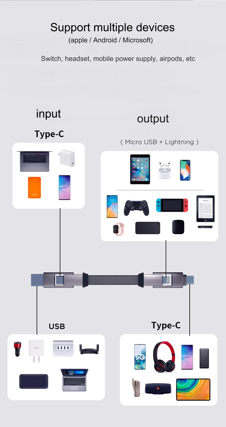 Швейцарский армейский нож кабелей. Все кабели, которые вам нужны, крошечный Брелок EDC (для ежедневного использования) кабель. Поиск идеального кабеля закончен, самый продаваемый кабель для ключей в мире снова. Зарядка 6. Последний продукт линии inCharge, он магнитно защелкивается на ваш брелок, так что он никогда не остается позади. Благодаря наличию более 5 млрд портов USB и USC-C по всему миру, зарядка делает проблему низкого заряда батареи проблемой из-за прошлого. Зарядка и синхронизация InCharge 6 оснащен зарядкой и синхронизацией, что позволяет быстро передавать данные с портативных устройств на компьютеры. Один для всех Запатентованная конструкция inCharge 6 позволяет заряжать любое портативное устройство от любого источника питания. Уникальный дизайн. Внимание к деталям, прочные материалы и высококачественные разъемы-это ключевые ценности, которые делают зарядку настоящим шедевром. А. N52 магниты. Возможны самые высокие магниты. B. Система защиты от скольжения. Предназначен для того, чтобы никогда не потерять заряд 6 C. Металлический корпус. Zync-алюминиевый сплав обеспечивает защиту и стабильность компонентов с течением времени. D. Защита кабеля. Для предотвращения повреждений ТПУ Защита кабеля защищает кабель от достижения критического уровня изгиба. Сверхпрочный состав. 90 плетеных медных проводов (A), защищенных слоем ТПУ (B) и покрытых нейлоновым усилением (C), делают inCharge 6 самым сильным кабелем для ключей, когда-либо созданным. Телефон к телефону. Одной из самых привлекательных особенностей inCharge 6 является возможность передачи питания, когда Стандартные порты отсутствуют с телефона на другой телефон, беспроводные наушники или любое другое устройство. * Доступно только для телефонов usb-c в качестве входного сигнала. Цвета. 3 анодированных цвета, которые придают различные вкусы пользователя, от элегантных нейтральных до более стильных и уникальных тонов.
