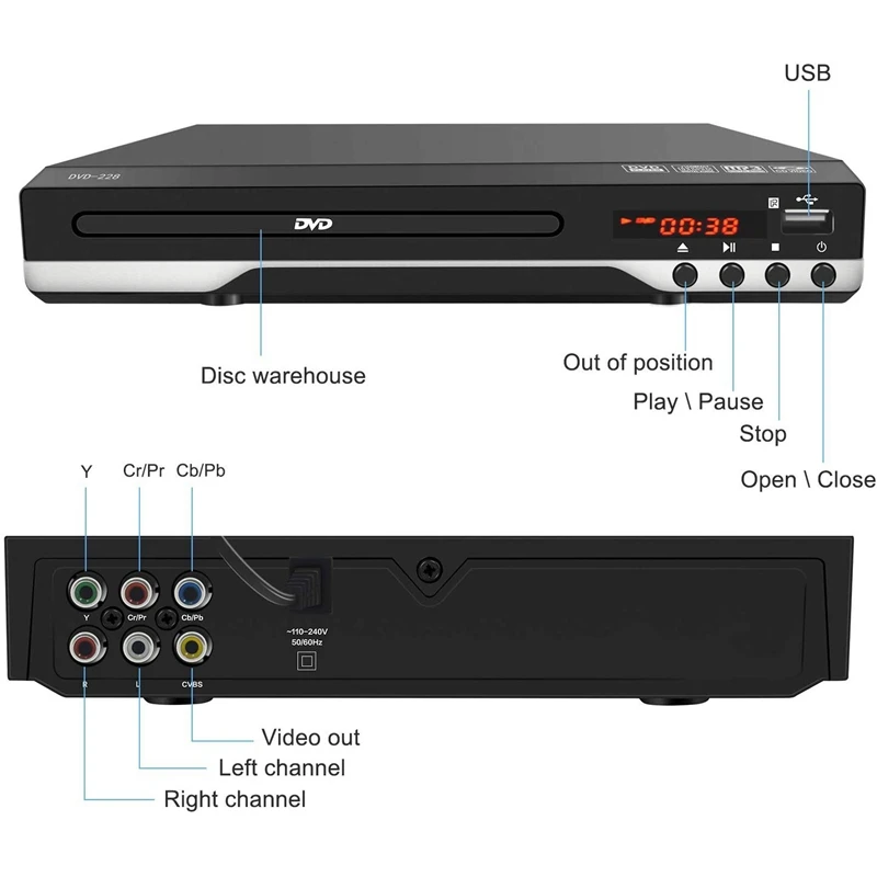 Мультимедийный dvd-плеер: этот регион Бесплатный dvd-плеер будет воспроизводить практически любой диск или формат DVD, AVI, CD, CD-R/RW, DVD-R/RW, DVD R/RW, VC1, MPEG1, MPEG-2, вы не будете ограничены по вашему выбору