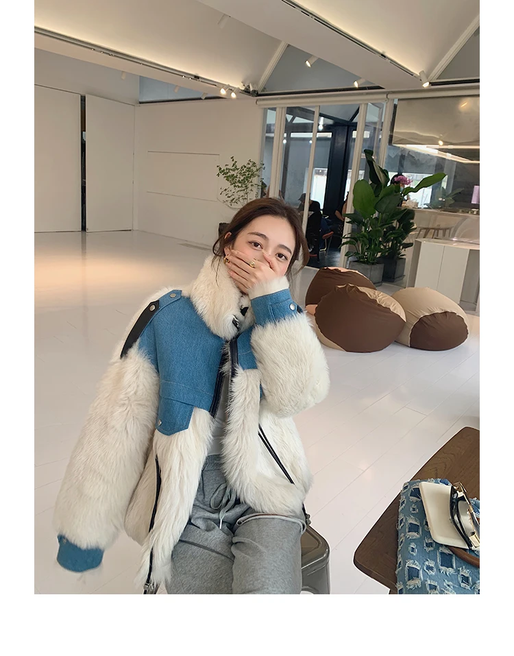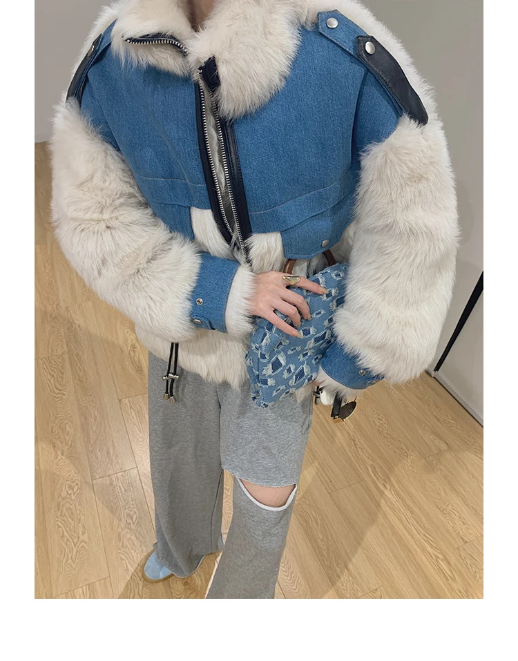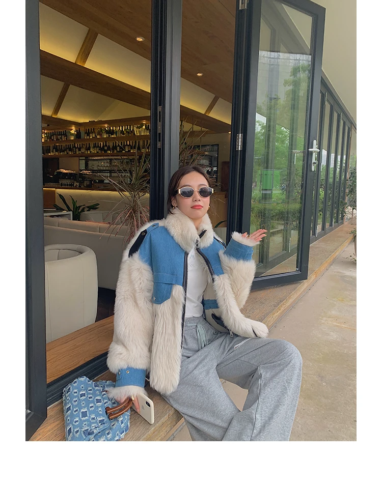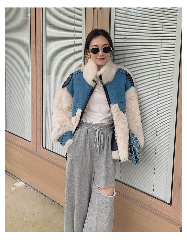 Роскошные Тоскана на овечьем меху; Мех и подкладка-один слой, поэтому они очень теплые. Мех Тосканы длиннее, чем мех других овец. Плотность меха тосканы более высокая и теплая, это роскошь, чем мех из мериносовой овчины. Синяя часть: джинсовая ткань из 100% хлопка Красивые контрастного цвета