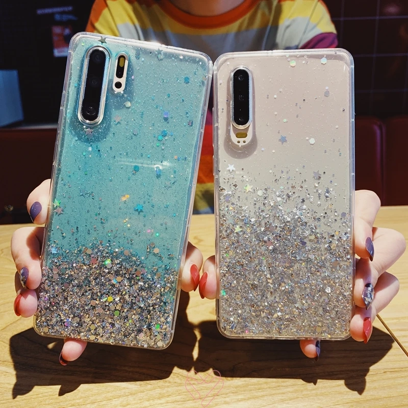 Для Huawei P20 P30 P40 Y5P Y6P Y7P Nova 3 3i 7i Honor 8X 8A 9 9c 9s 10 20 Lite 10i Pro мягкий чехол из ТПУ с блестками и звездами