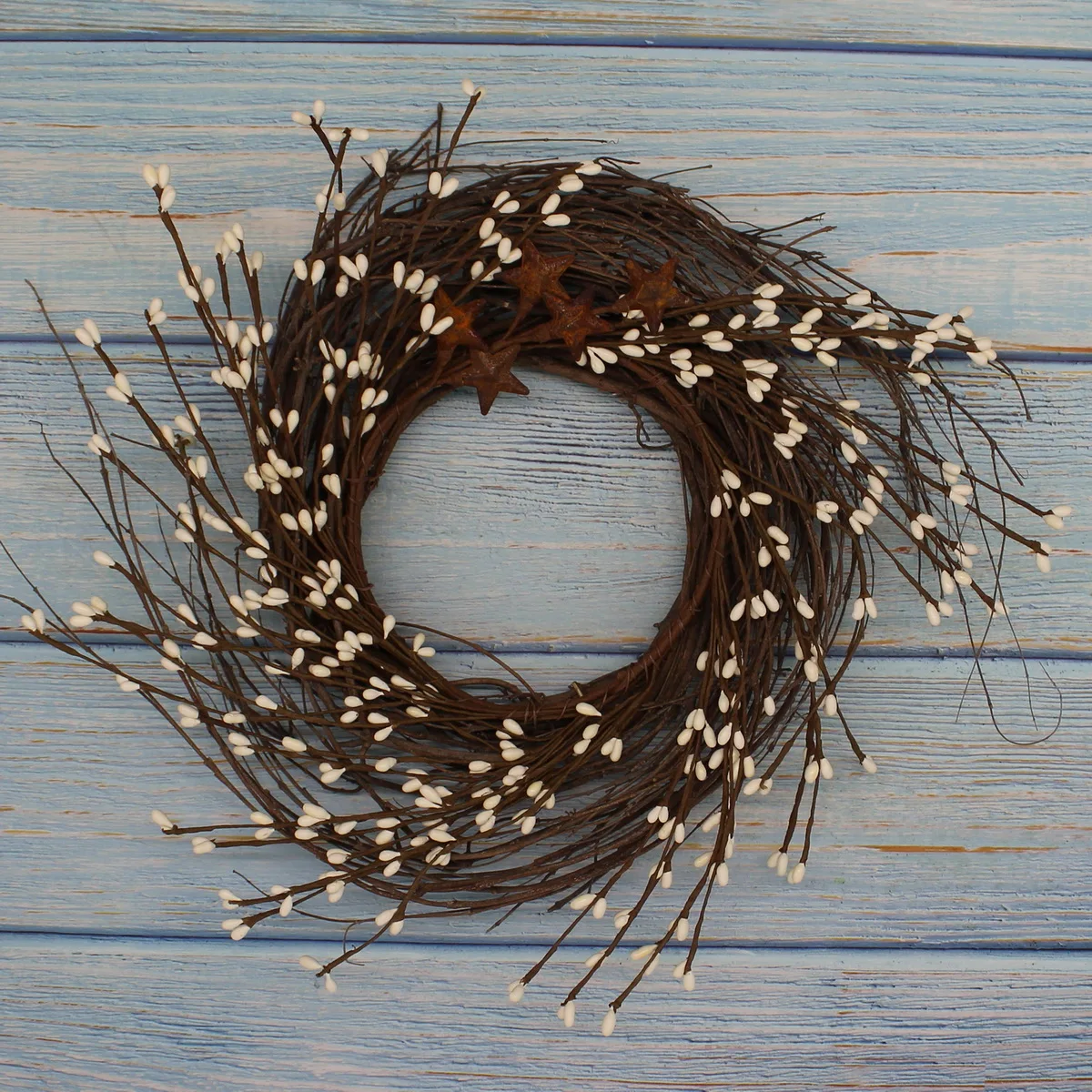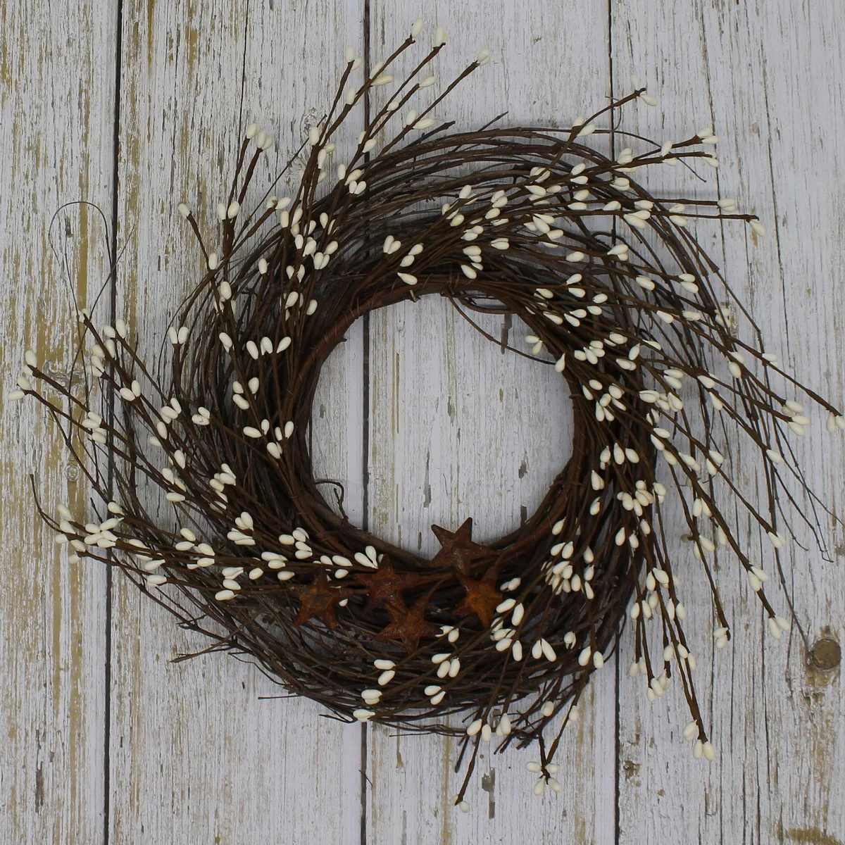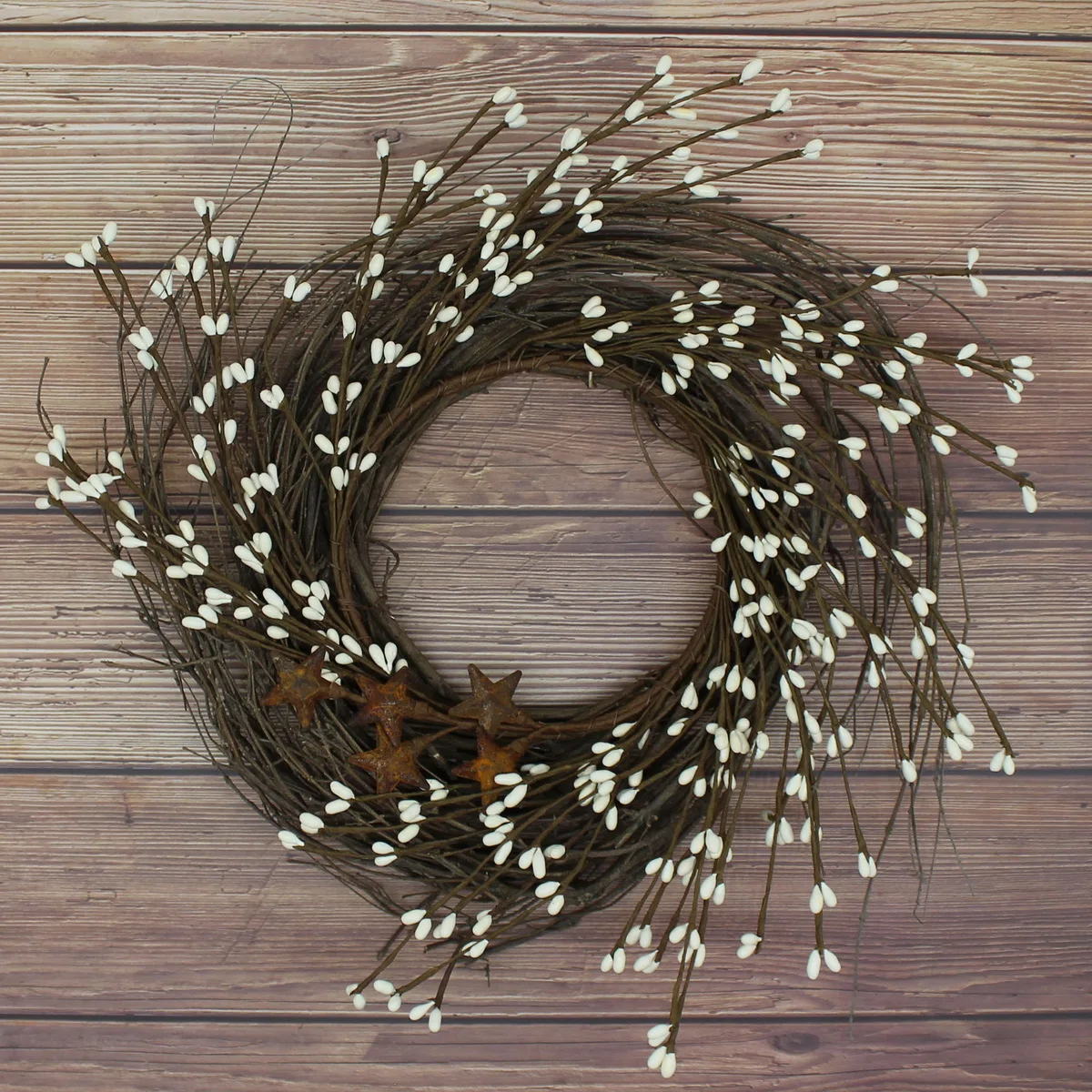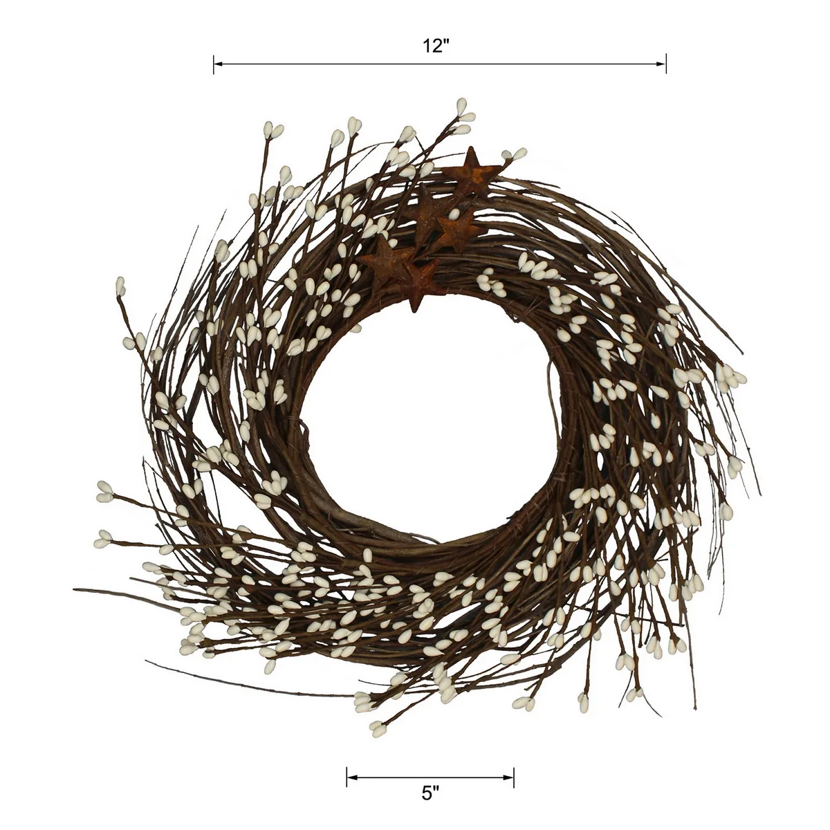 CVHOMEDECO. Примитивы деревенские Пип ягоды и веточки с ржавым сараем звезды венок, 12 дюймов, слоновая кость