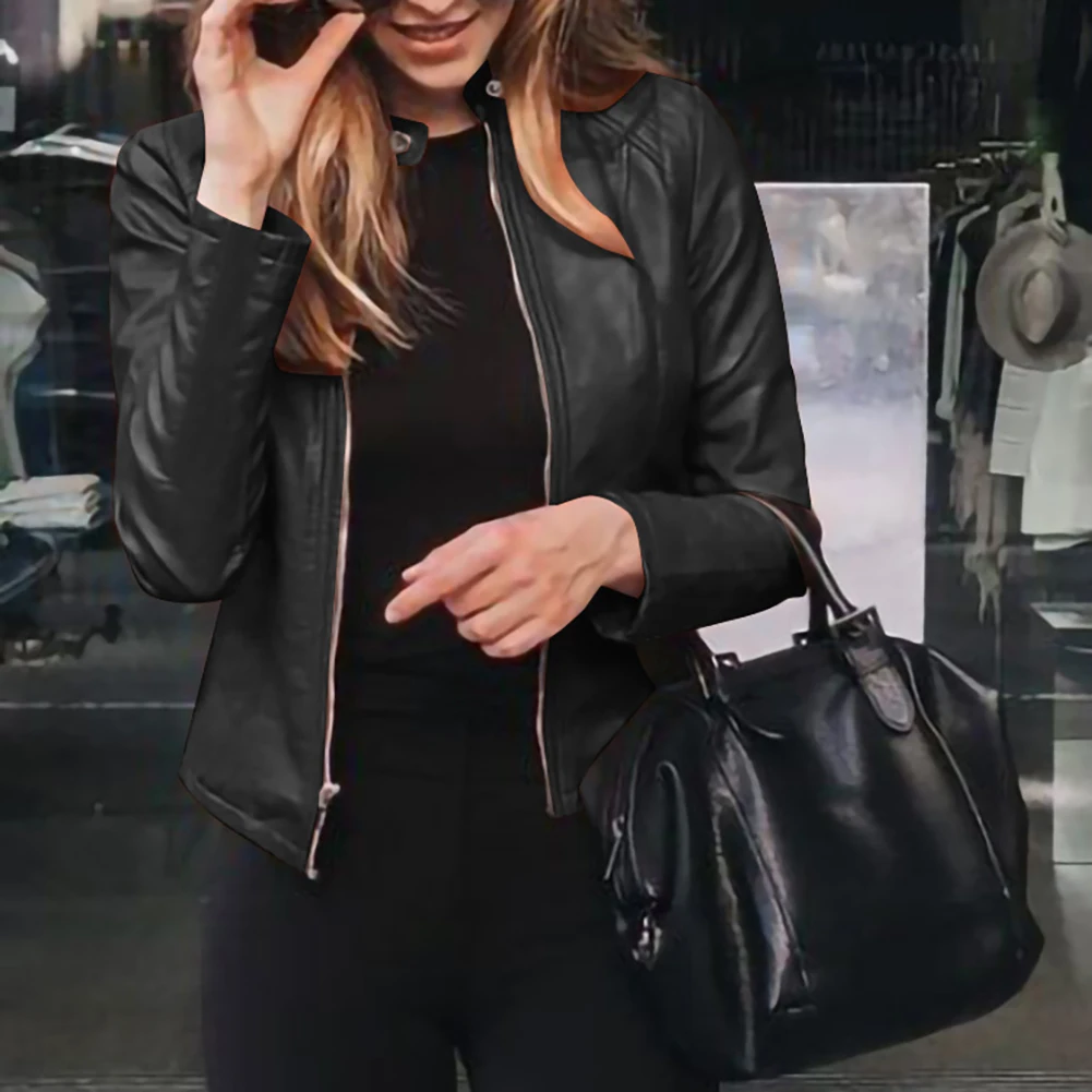 Женская мода осень весна куртка короткий костюм из искусственной кожи пальто верхняя одежда