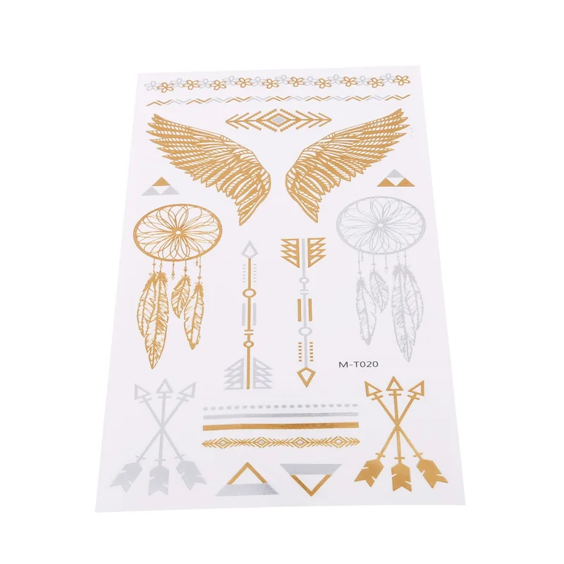 1 шт., винтажные временные тату-наклейки для женщин и детей, боди-арт, звездное перо, золотой металлик, Переводные флэш-тату для детей
