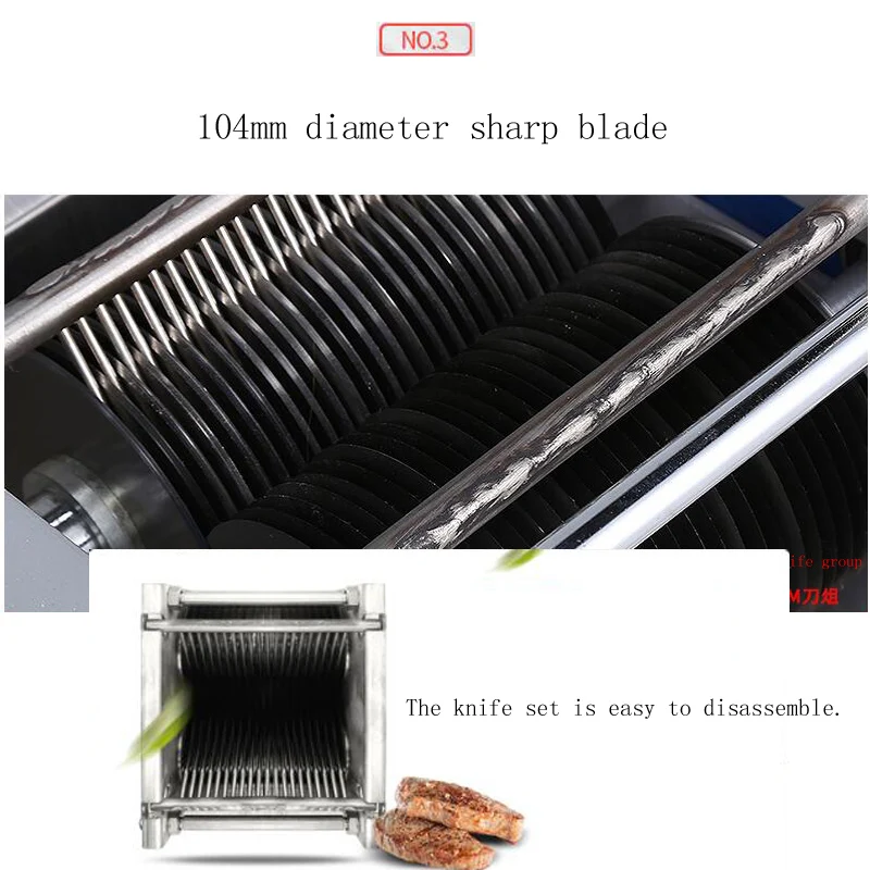 1. Машина не может резать картофель, морковь и другие твердые фрукты и овощи. 2. Сначала рекомендуется использовать теплую воду несколько раз для очистки, а затем сначала порезать некоторые овощи, чтобы вкус новой машины мог быть удален. 3. Малый объем и большая энергия, используется для нарезки мяса, мяса шелка, нарезанного мяса, мясного фарша. Экономьте пространство для удовлетворения множества коммерческих потребностей.