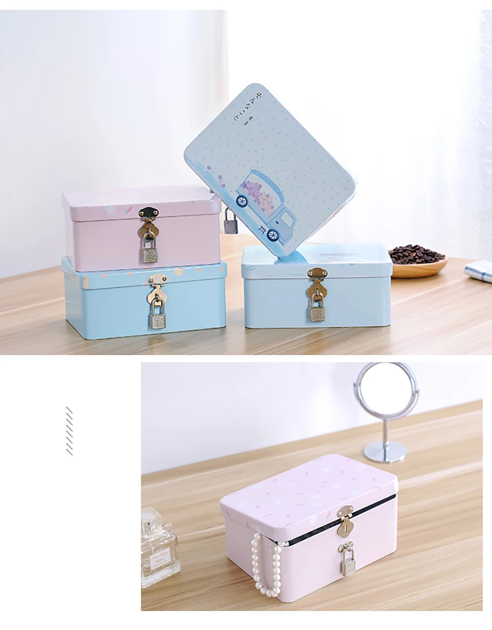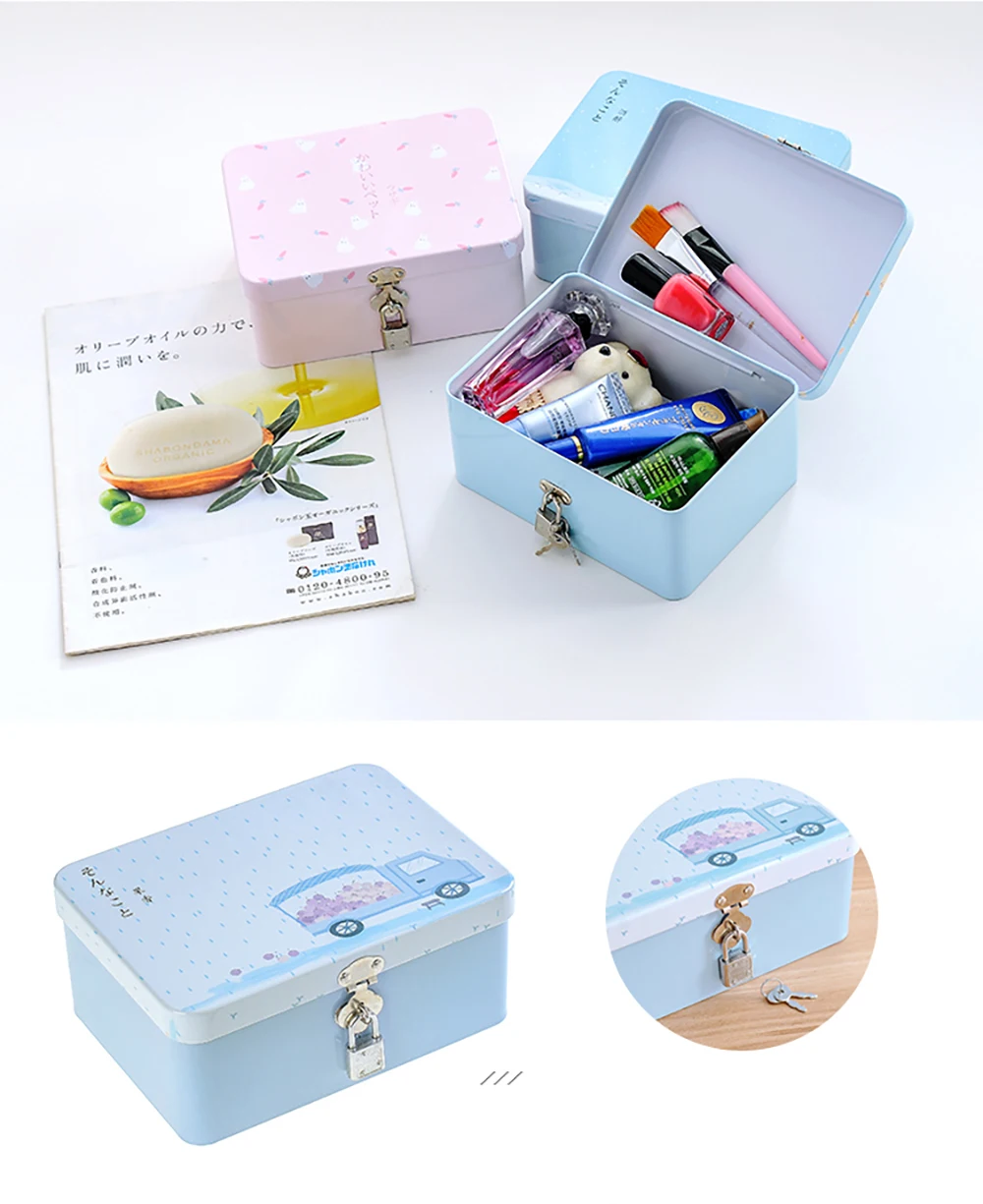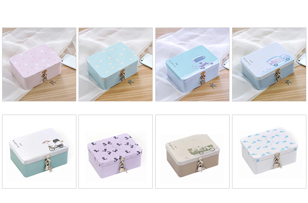 Цветная жестяная коробка, герметичная банка, коробки для хранения с замком и ключом, монета