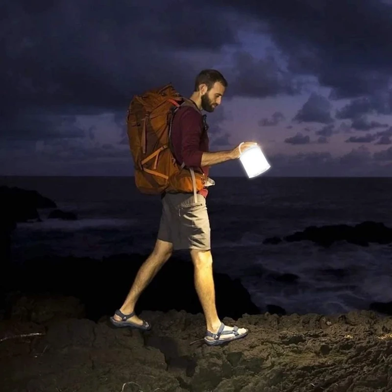 Он надувной, Небьющийся, пыленепроницаемый, складной, плавный, не будет легко сломать/раздавить. Оснащен защитой от перезарядки/разрядки, перегрузки по току и короткого замыкания, полностью безопасен для использования детьми. Удобная ручка позволяет повесить его на рюкзак/в палатке/на ветках для быстрого и легкого доступа.