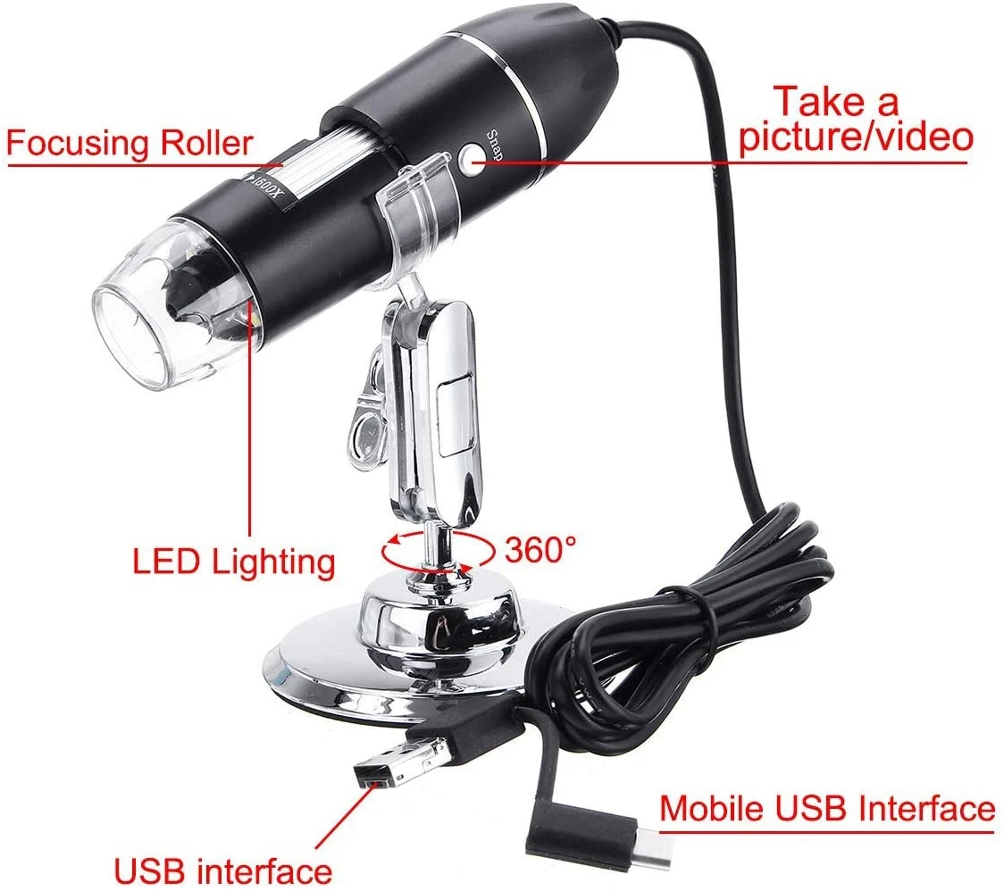 Мощная функция: 500X-1600X USB увеличительное стекло, с 8 светодиодный ными лампами, освещение области осмотра может быть отрегулировано через колесо яркости. Снимайте снимки с экрана и записывайте видео в micro world, что позволяет создавать четкие и стабильные изображения при использовании. Широкий спектр применения: Этот цифровой микроскоп управляется через USB и широко используется для сбора/проверки монет, образовательных целей, контроля кожи, осмотра волос, анатомии/инспекции растений, текстильной инспекции, проверка ювелирных изделий, печать инспекции, PCB или PCBA инспекции и т. Д. Простота в использовании и переноске: установите программное обеспечение, подключите устройство, и теперь вы можете использовать эту микроскопическую камеру для изучения микроскопического мира. Предоставляем металлический кронштейн, адаптер OTG, линейку, драйвер и чемодан, который используется для многих целей. Совместимость с большинством электронных устройств: Совместимость с Windows 7, Windows 10/10,13 и более поздними версиями, телефонами Android с функцией OTG. (Как проверить OTG? Загрузите бесплатное приложение «USB OTG Checker»). Этот микроскоп не подходит для IOS iPhone. Затемнения: Встроенный 8 светодиодный индикатор, вы можете использовать светодиодный регулятор регулировки яркости, чтобы легко контролировать яркость света. Через рассеиватель излучает светильник, светодиодный светильник мягкий и не ослепляет объект под наблюдением. Разрешение: VGA CD-ROM: содержит тестер драйверов программного обеспечения руководство пользователя Формат данных: YU Y2 Баланс белого: Авто Формат вывода (статический): YU Y2 Вспомогательный выходной формат (статический): BMP/JPEG Тип привода: uvc Светильник источник: положительный Белый светодиодный Режим фокусировки: руководство Размер кабеля: 640*480 Рабочий ток: 120 мА макс Рабочая температура: 20 ° C-750 ° C Частота кадров: 30F/s Метод передачи сигнала: USN2.0 Соотношение сигнал/голос: 42 дБ Рабочая влажность: 30%-90% относительной влажности Чувствительность: 2,5 V/Люкс. s. Размер корпуса: 112 мм (длина) 33 м (внешний диаметр) Источник питания: USB-5V Структура линз: 2G + 1 R Поддержка системы: Win10 Win8 Win7 XP Датчик изображения: 1 \ 6,5 "цветной CMOS датчик изображения Список товаров: 1 x микроскоп 2x адаптер 1 руководство по эксплуатации