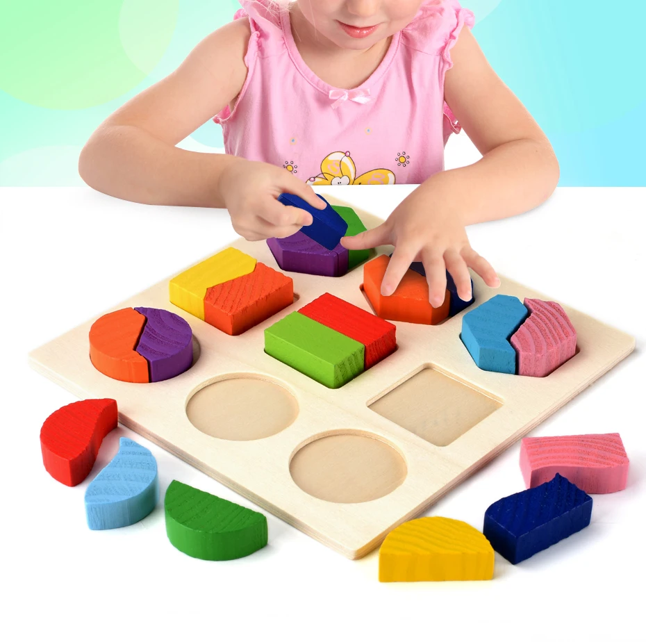 Дети 3D головоломки деревянные игрушки красочные геометрические формы познания деревянные головоломки Дети раннего обучения образовательные игрушки Монтессори