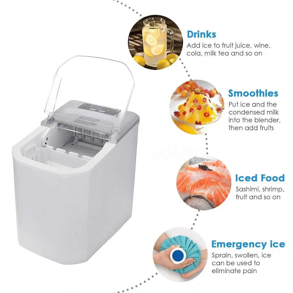 ● Прозрачное окно: удобное окно для просмотра, чтобы проверить ход производства льда, нет сантехники требуется!
