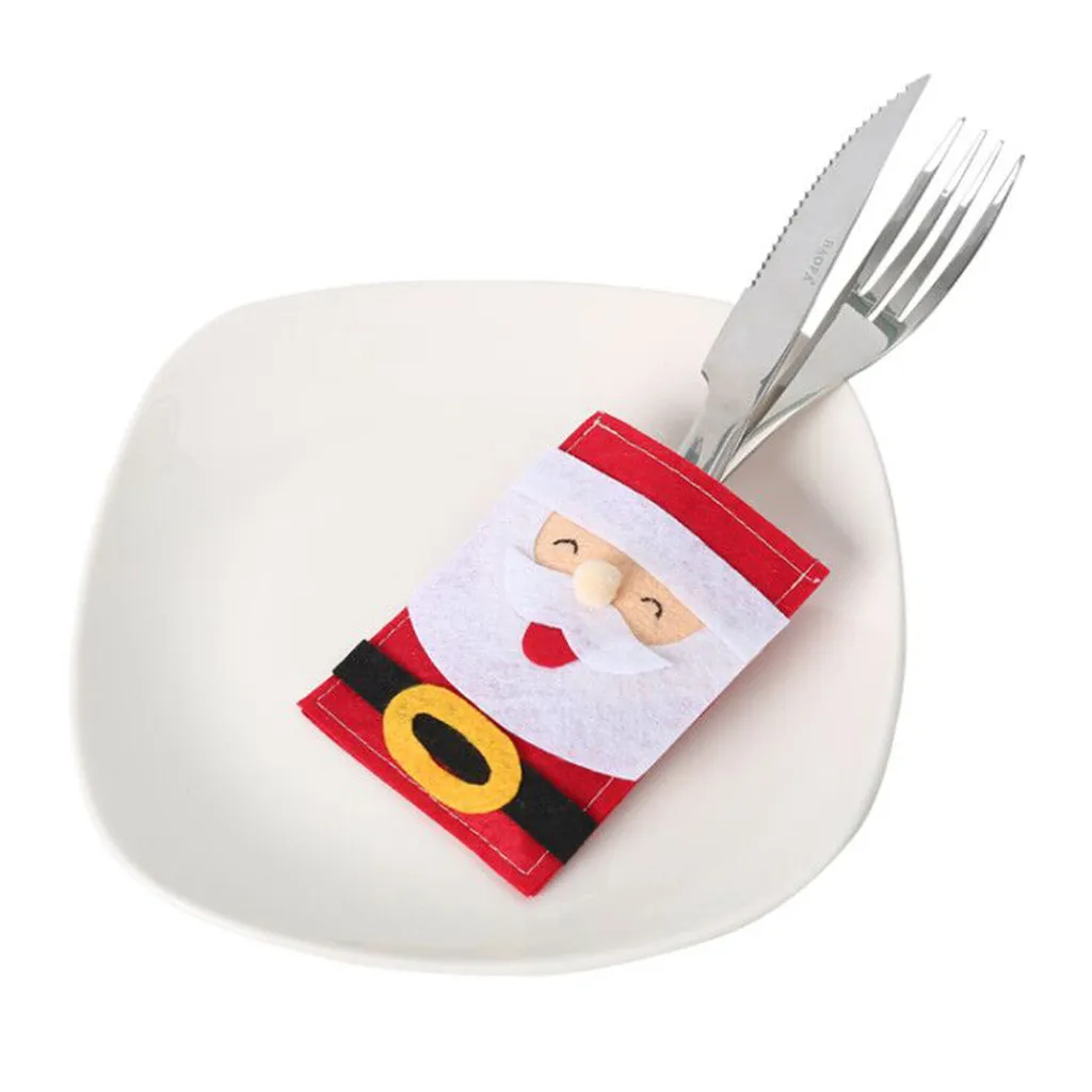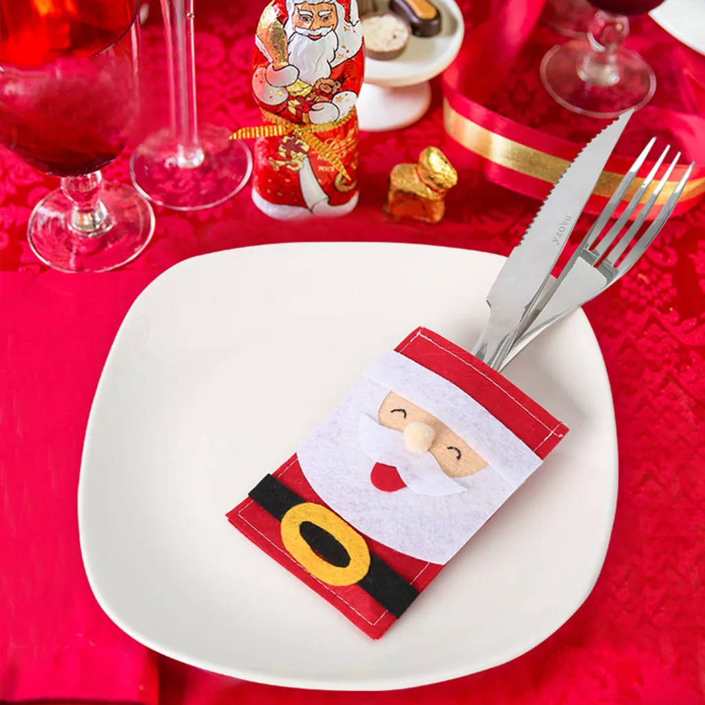 Рождественское украшение стола, упаковка посуды и хорошая праздничная атмосфера