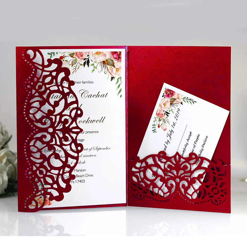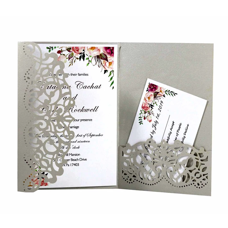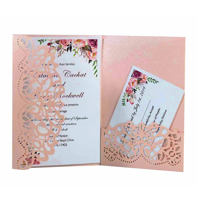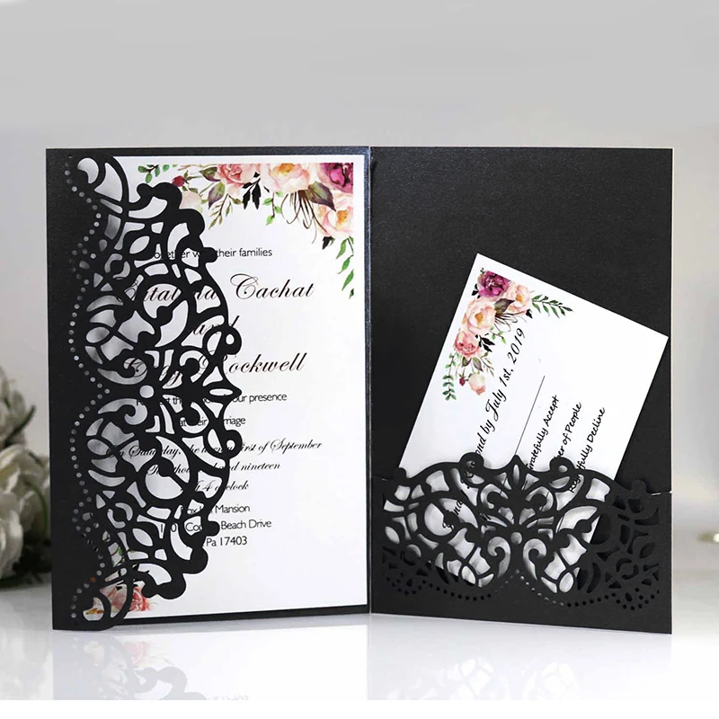50pcs Hollow Elegant Laser Cut Wedding Invitation Card Greeting Card Customize Business With RSVP Card Party Wedding Decoration