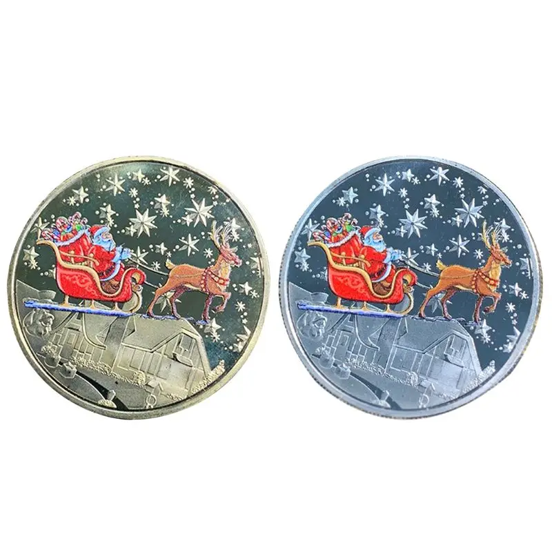 Особенности: Изготовлен из высококачественного сердечника из цинкового сплава, покрытого, высокопрочного, износостойкого, антикоррозийного, прочного. Дизайн поверхности, двусторонний, изображения представляют собой переднюю и заднюю часть. Сувенир коллекционное искусство, бизнес праздник украшение подарок. Он полон памятного значения и потрясающий подарок для тех, кто любит собирать монеты. Спецификация: Название продукта: сувенирная монета Материал: Позолоченное серебряное покрытие Диаметр: 4 см/1,57 дюйма Толщина: 2,5 мм/0,10 дюйма Цвет: Золотой/Серебряный Пакет включен: 1x сувенирная монета 1 маленькая Подарочная сумка (случайный цвет)