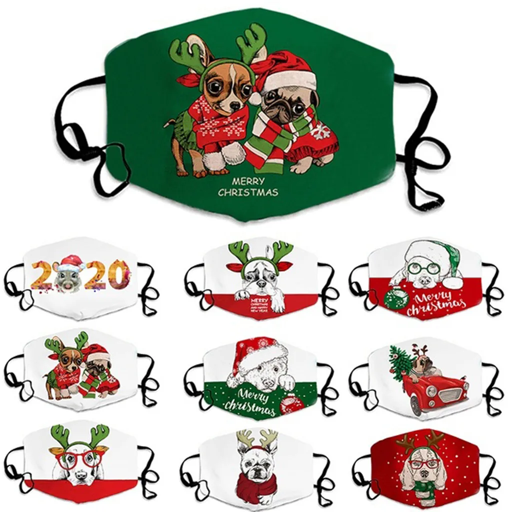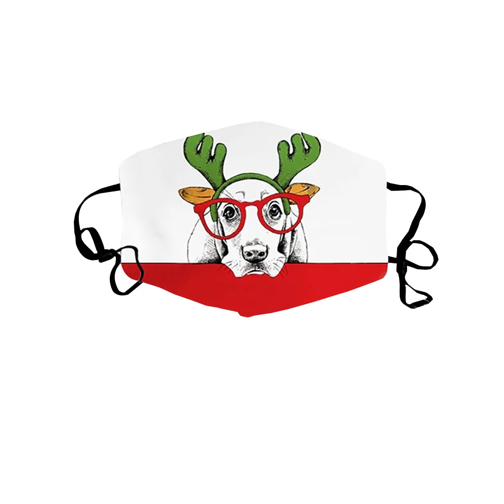 Унисекс модная Рождественская Милая маска с принтом животных Регулируемая смываемая маска для лица Характеристика: