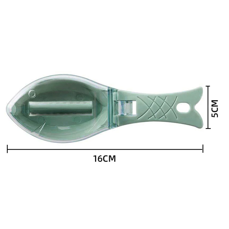 * With clear cover-- After scraping off the scales, you can open the lid and pour out the scales, so easy to clean.
