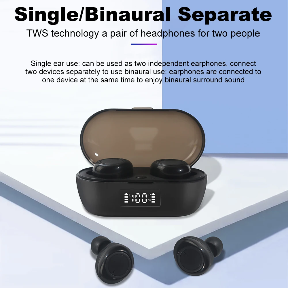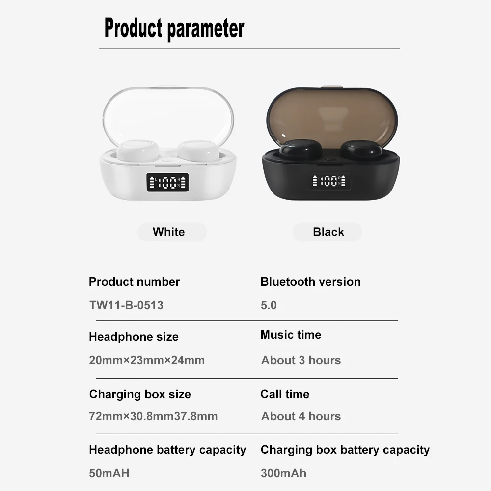 Описание: Одна кнопка управления легко включается/выключается, воспроизводит/паузы/переключает музыку, свободные руки звонки для вождения, работы, встречи, бега. Одно-два подключения, можно подключить к двум мобильным телефонам одновременно. Интеллектуальная Совместимость: Поддержка всех Bluetooth мобильный телефон, планшет, ноутбук, QQ музыка, фильмы и т. Д., универсальный мобильный телефон. Характеристики: 1. Версия Bluetooth: V5.0 2. Расстояние Bluetooth: 10 м 3. Время зарядки: около 1-2 часов 4. Время работы в режиме ожидания: около 80 часов 5. Время воспроизведения музыки: около 3 часов 6. Время разговора: около 4 часов 7. Аккумулятор для наушников: полимерный литиевый аккумулятор 45 мАч 8. Аккумулятор: полимерный литиевый аккумулятор 280 мАч 9. Формат передачи аудио: HFP/A2DP/HSP/AVRCP Посылка включает в себя: Наушники TWS Bluetooth (левый и правый уши)-1 шт. 1 x Зарядное устройство 280 мАч 1 х USB кабель для зарядки 1 x Руководство пользователя 4 x Ушная крышка