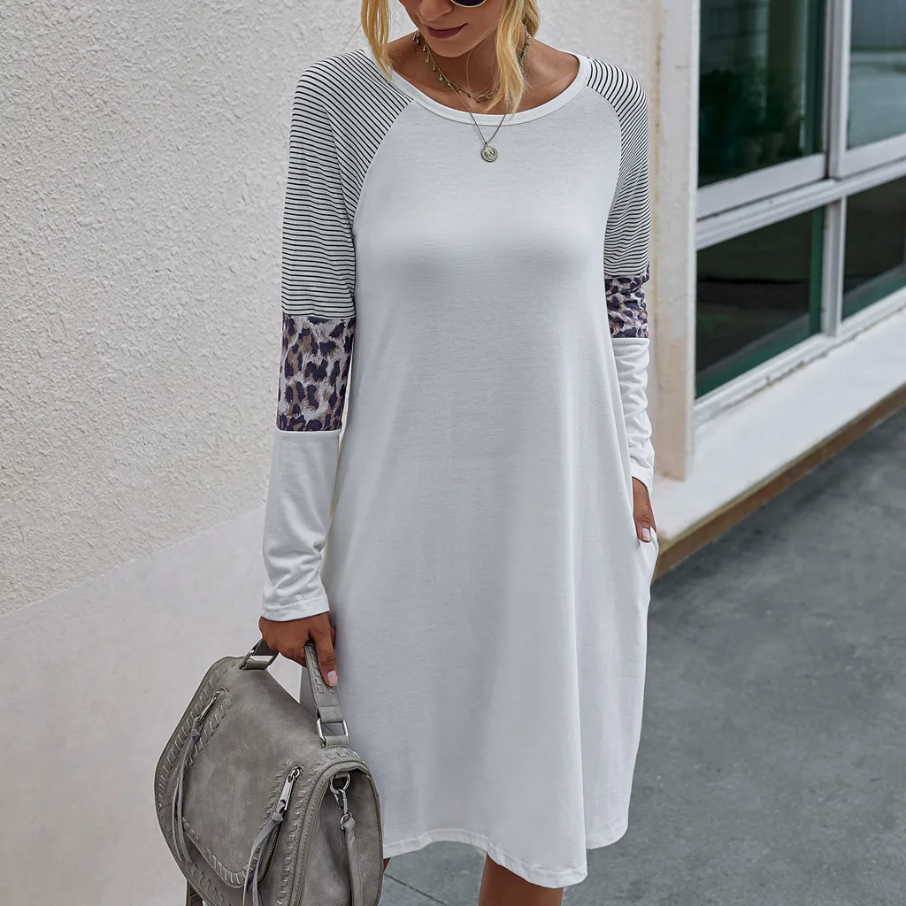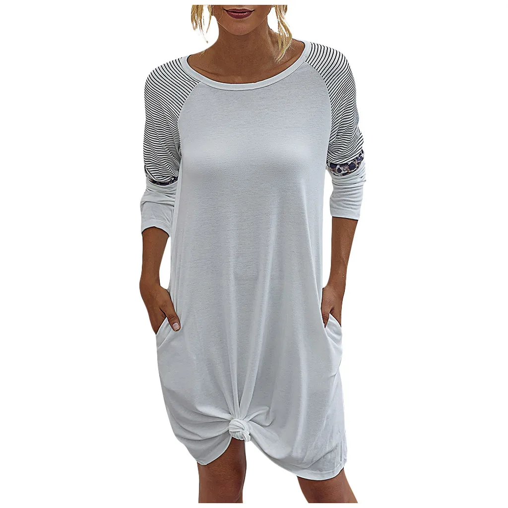 Женское модное платье в полоску с длинными рукавами и карманами