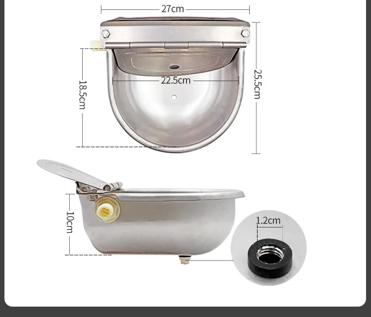 Описание: Вариант 1: поплавок из нержавеющей стали для питьевой воды 1. Имеет дизайн Дренажного Отверстия для очистки остаточной воды. 2. Есть два фиксированных отверстия в хвосте для армирования. 3. Автоматический поплавок, используя принцип уровня воды, плавающий, для достижения эффекта постоянного уровня воды. 4. Нержавеющая сталь, прочная и долговечная. 5. Интерфейс компактный и прочный с тонкой обработкой. Название: поплавковый шар из нержавеющей стали Материал: нержавеющая сталь 304 Цвет: серебро Размеры: прибл. 27X25X10 см Размер интерфейса: внешняя резьба 1/2 "(20 мм) Подходит для: крупного рогатого скота, лошадей, овец, свиней, собак и других крупных животных. Характеристики: автоматический выход, прочный, экономия воды, санитария и т. Д. Принцип работы: Питьевая чаша может быть непосредственно подключена к водопроводной воде, и плавучий принцип поплавкового шара может использоваться для автоматического хранения воды. Когда чаша заполнена водой, поплавок будет плавать, нажмите на кожаную подкладку, и вода автоматически закроется. После того, как животное закончит пить воду в чаше для воды, поплавок падает вниз, кожаная подкладка ослабляется, вода автоматически открывается, чаша для воды заполняется, вода автоматически закрывается. Этот цикл Обеспечивает самоконтроль воды и сохранение воды. Вариант 2: поплавок 1. Аксессуары для контроля уровня воды из нержавеющей стали Примечание: 1. Реальный цвет изделия могут быть повреждены во время быть s светильник ly отличаться от показанного на изображении из-за разницы в светильник и с настройками экрана. 2. Возможны отклонения на 0-2 см из-за ручного измерения. 3. В комплект входит: 1 чаша для воды buffalo/3 поплавковых шара