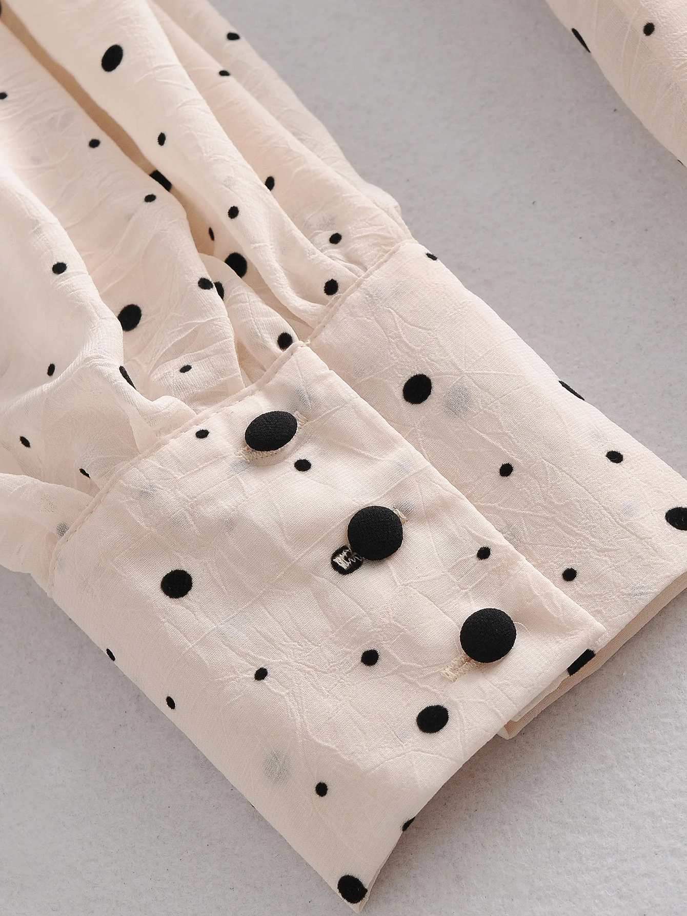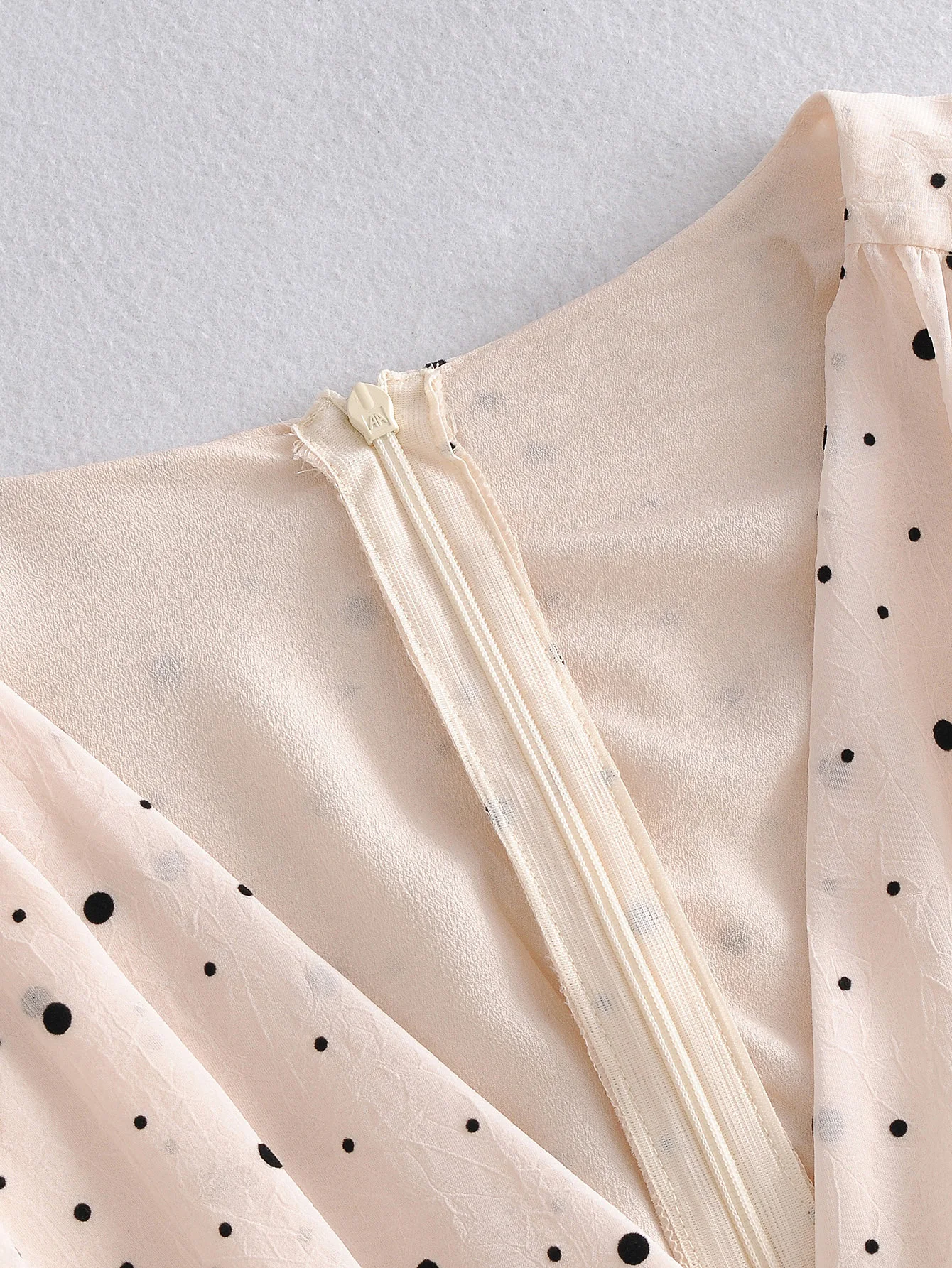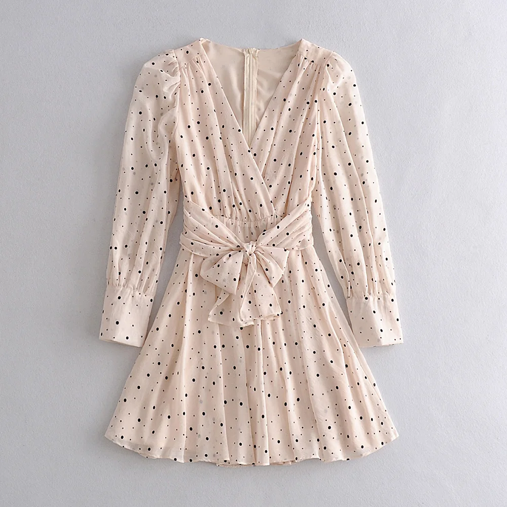 Женская рубашка с длинным рукавом в горошек платье свободного кроя с v-образным вырезом с длинным рукавом с бантом, вечерние платья; Элегантные; Изящные женские летние Za бежевый размера плюс платье