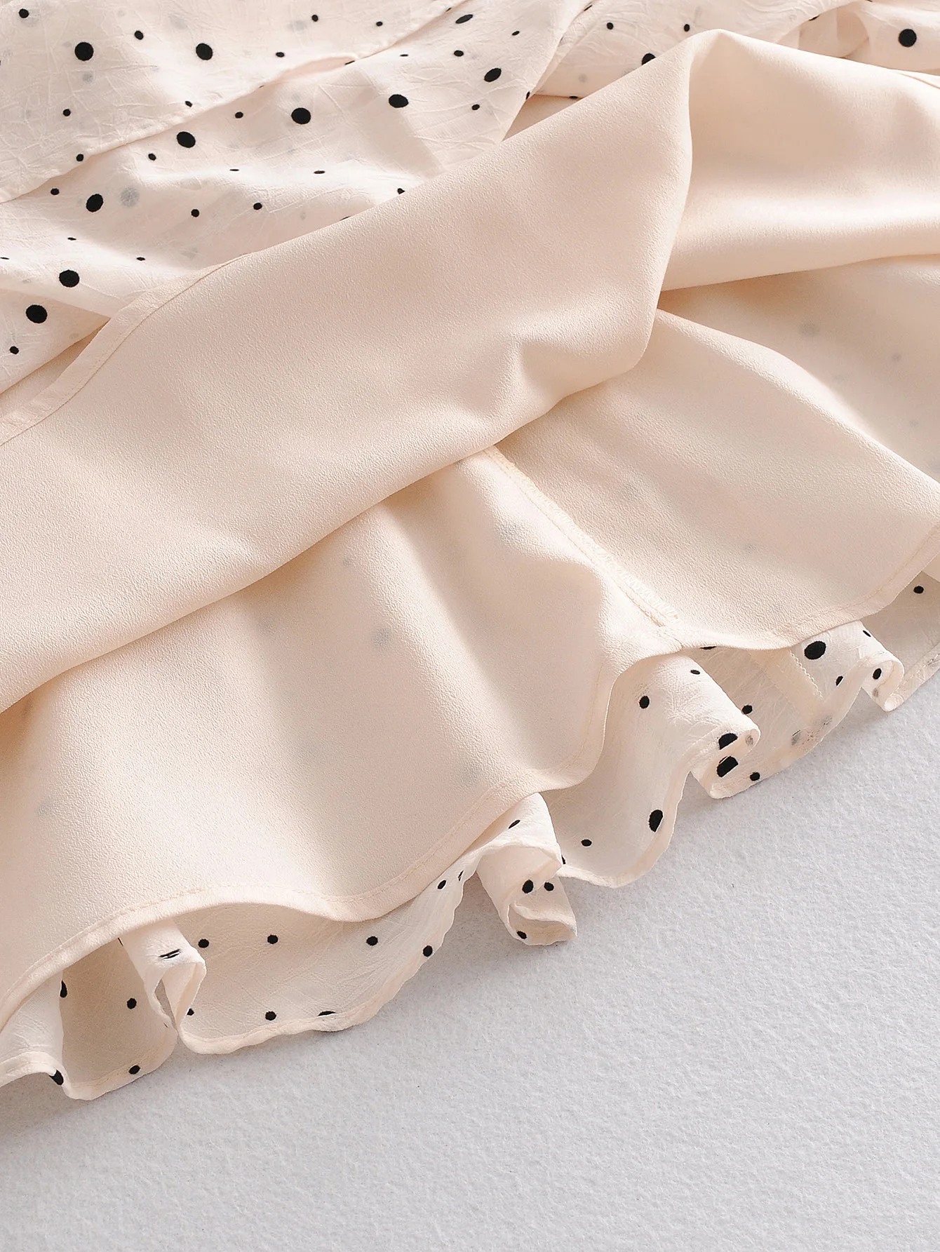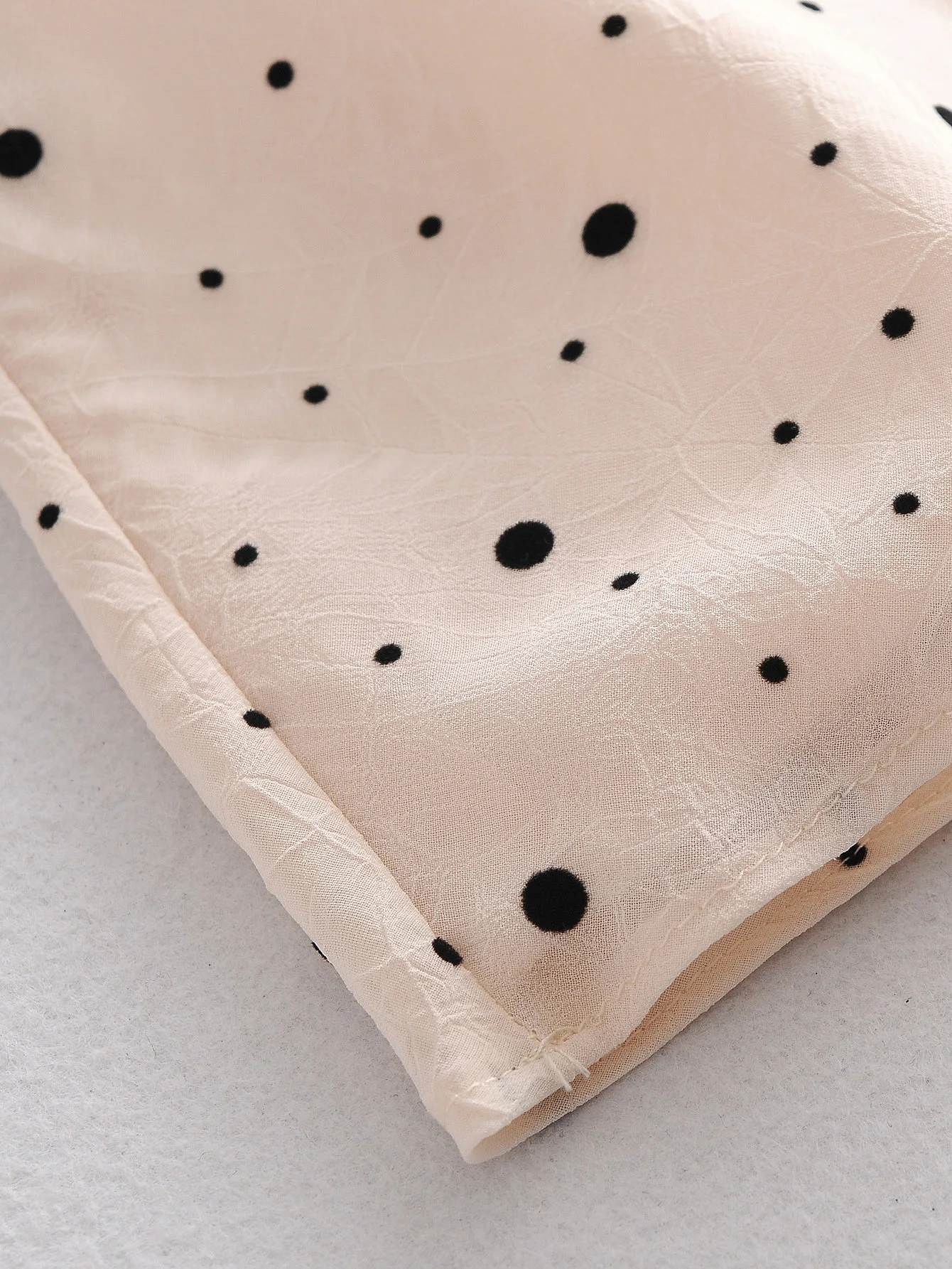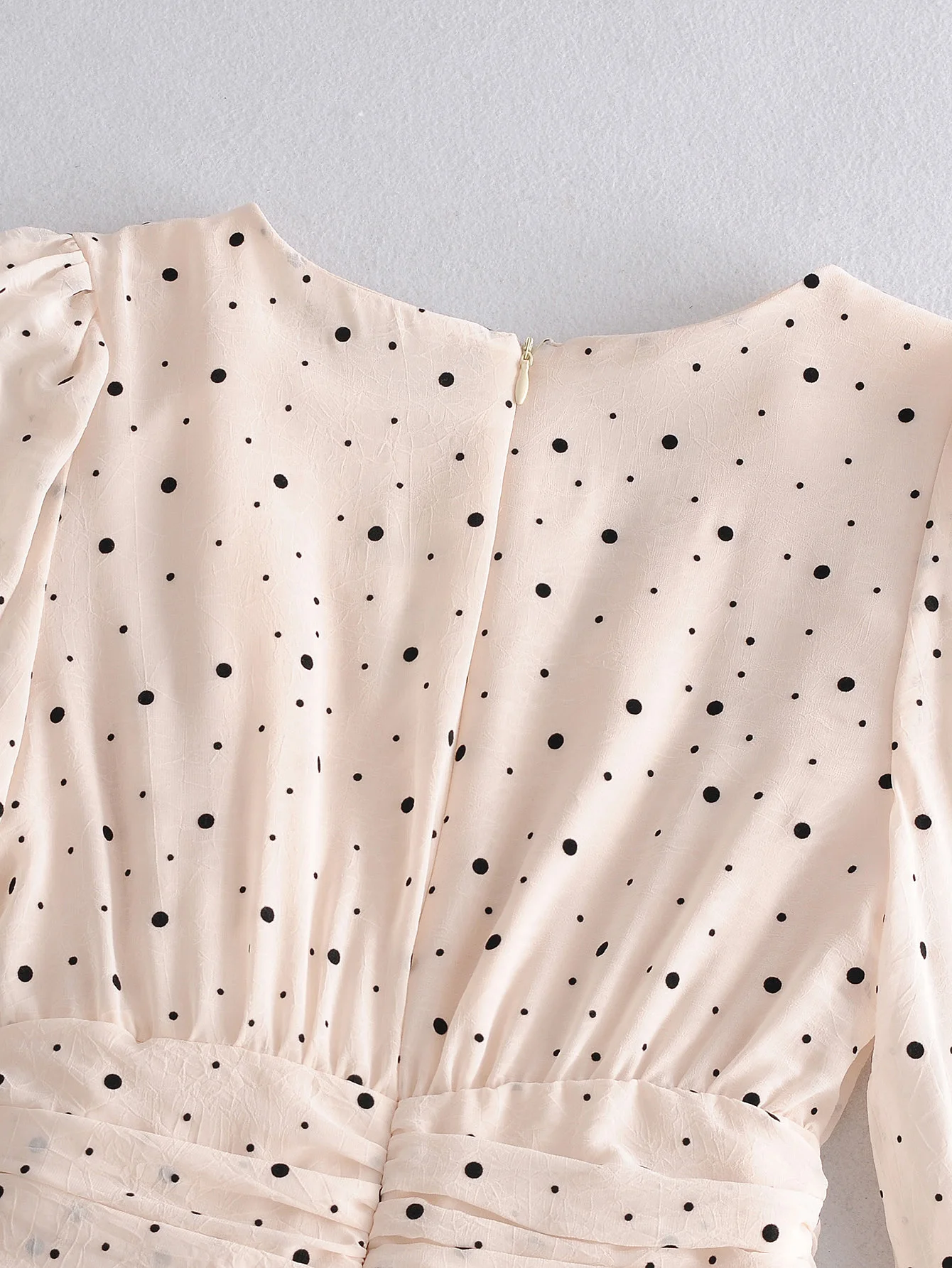 Женская рубашка с длинным рукавом в горошек платье свободного кроя с v-образным вырезом с длинным рукавом с бантом, вечерние платья; Элегантные; Изящные женские летние Za бежевый размера плюс платье