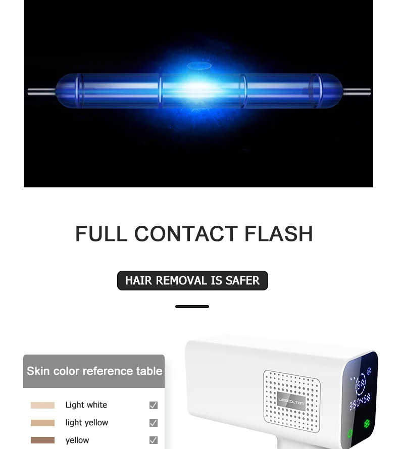 1. Применение: Рабочее напряжение 100 ~ 240 В, подходит для всех стран мира. 2. Перманентный: IPL действует внутри пор, разрушая волосяной фолликул, тем самым обеспечивая постоянное удаление волос. 3. 2 в 1 с 2 режимами работы: удаление волос + Функция омоложения, работа в 2 режимах: только удаление волос, только омоложение. 4. Кнопка сенсорного типа с ЖК-дисплеем четко показывает левое время мигания, статус функций и уровень мощности 5. Два режима работы: ручная вспышка подходит для подмышек, бикини и других небольших участков удаления волос. Автоматическая вспышка подходит для бедер, рук и других больших участков эпиляции. Нажмите и удерживайте кнопку может достичь Автоматическая непрерывная светильник, эффективность удаления волос лифе по 30%. 6. Одна Встроенная конструкция держателя лампы, более стабильная и долговечная, чем сменный тип лампы. 7. Нулевые расходные материалы, без среднего, без расходных материалов 8. Пять регулируемых дополнительных уровней энергии в соответствии с чувствительностью кожи 9. Быстрая обработка и большая площадь: 4,8 квадратных см точечный размер высокая эффективность и быстрая скорость 10. Безопасность: не влияет на нормальное потоотделение и секрецию потожировых желез 11. Удобство: Портативный дизайн, удобно брать с собой