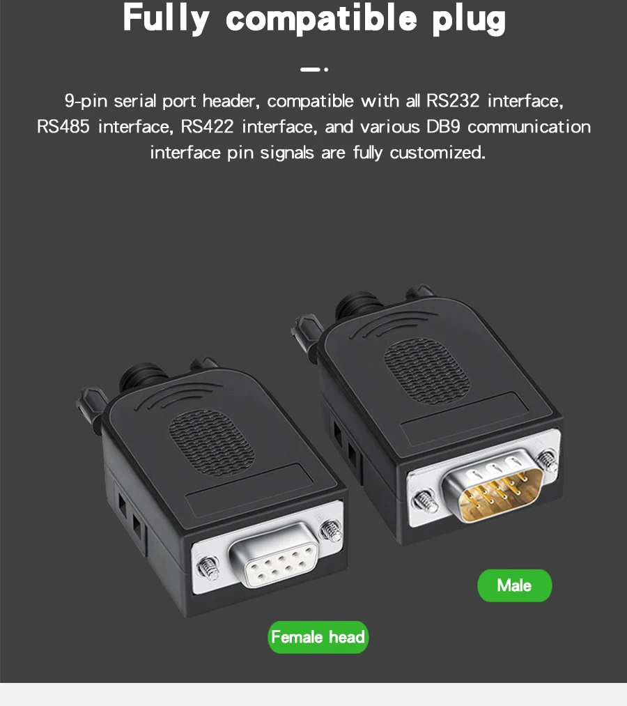 DB9 разъем без пайки 9-контактный RS232/485 белый клей последовательный порт волна припой беспаяный разъем