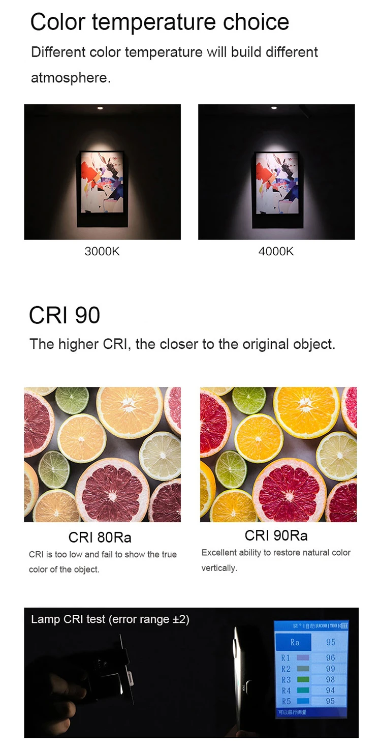 CRI (индекс цветопередачи (Ra>90) близкий к ежедневному видению, который защищает глаза и более подходит для чтения)