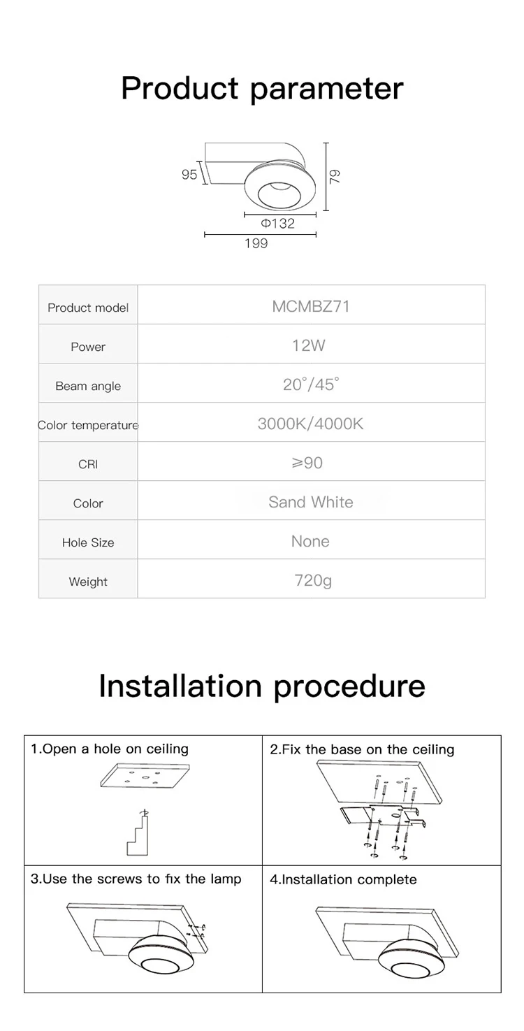 Цветовая температура: теплый белый (3000K), натуральный белый (4000K)