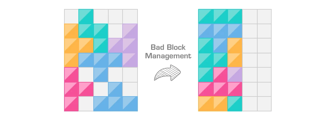 Механизм управления плохим блоком (BBM) обнаруживает и маркирует плохие блоки, чтобы избежать хранения в этих блоках и устранить ошибки доступа. И, даже если ошибки происходят в новых блоках во время стирания, этот механизм может перемещать данные в другие эффективные блоки, чтобы предотвратить потерю данных в результате сбоя стирания.