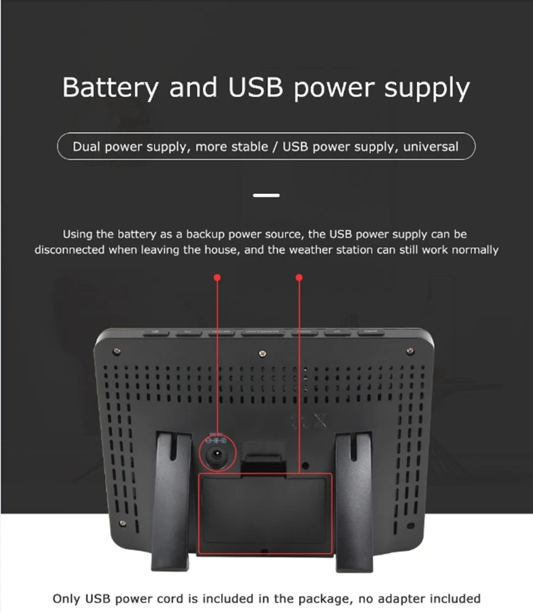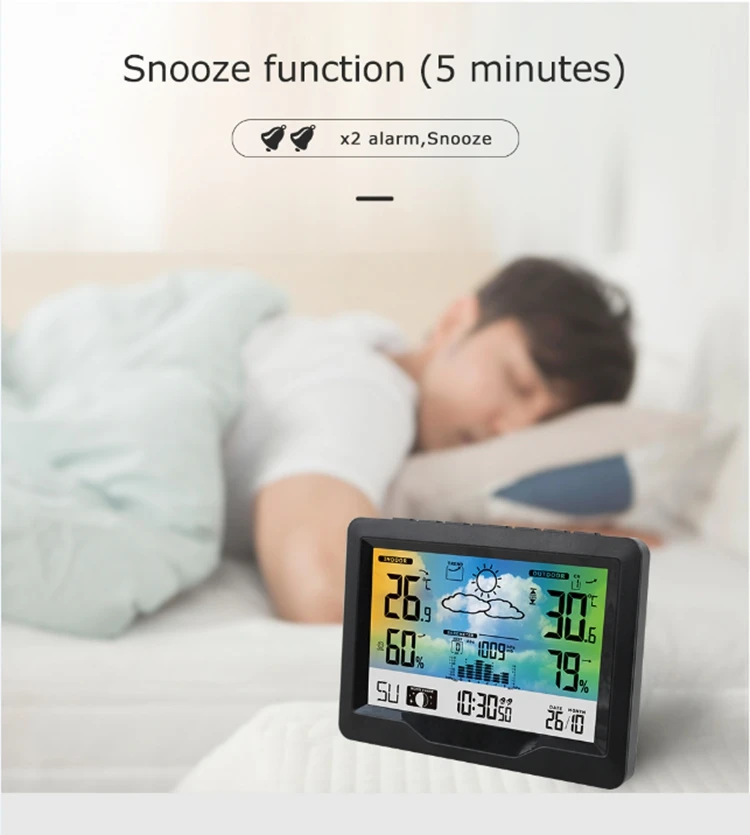 Wireless LCD Digital Weather Station Indoor Outdoor Thermometer Hygrometer Wall Barometer MoonPhase Weather Forecast Alarm Watch