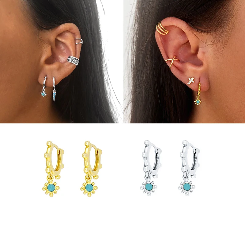 【Тип товара 】:Женские серьги-кольца с маленькими круглыми бусинами и подсолнухом